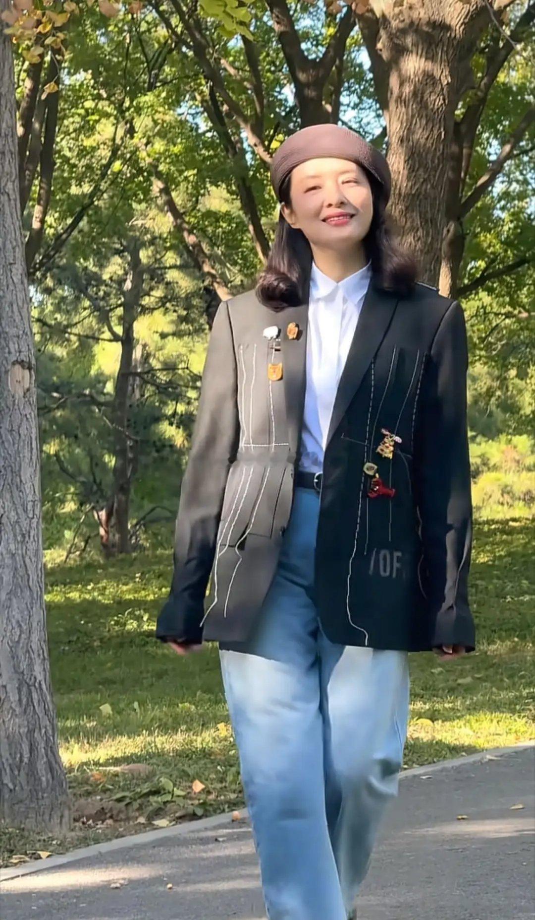 你认出来了吗?周涛秋日穿搭黑西装+白衬衫+牛仔裤,干练时髦,美得不像话……