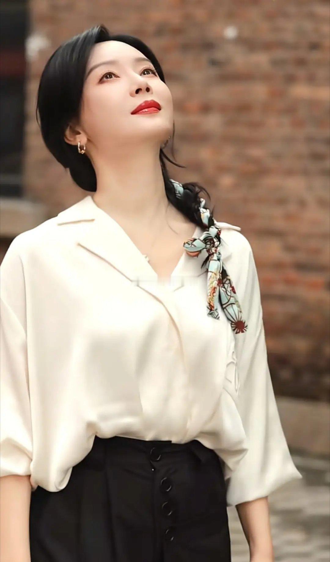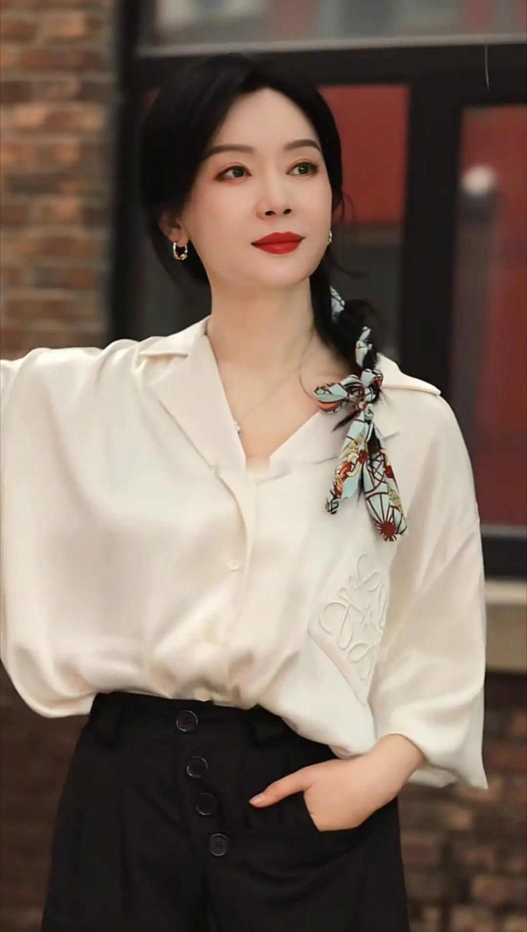 48岁陈数秋日以白衬衫配半身裙亮相,优雅大方,减龄气质尽显,一眼望去宛如28岁,美得让人移不开眼。