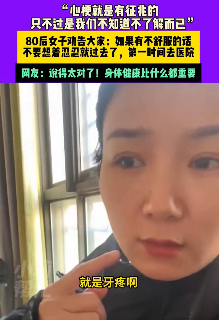 “牙疼别大意!”安徽一名80后男子突发牙疼,家人原以为是普通上火,没想到随后接连出现后背疼痛和胸痛症状,送医检查后竟被确诊为心肌梗死,需要立即进行支架手术。网友惊呼:这症状太隐蔽了! 据媒体报道10月31日消息,该男子在发病前两三天开始出现异常症状。最明显的是牙龈四周持续性疼痛,与普通牙痛不同,这种疼痛范围较广,让家人误以为是上火或智齿发炎。 随后,男子又出现后背和肩膀疼痛。直到第三天出现胸痛症状,家人才意识到情况严重,立即送医检查。经医院详细检查,发现多项身体指标异常,最终确诊为心梗,被紧急送入CCU重症监护室。 医生表示,心梗的早期症状往往不典型,除了常见的胸痛外,牙痛、肩背疼痛等都可能是心脏发出的求救信号。这些症状很容易被误认为是普通不适,导致错过最佳救治时机。 确诊后,男子需要立即接受支架手术。其妻子在网络上分享这段经历时提醒大家,年轻人也要重视身体发出的警告信号,不要以为忍忍就能过去。 这位妻子感慨道,身体早就给出了信号,只是大家太习惯忽略。她希望用亲身经历提醒其他年轻人,对持续不缓解的疼痛一定要提高警惕,及时就医检查。 对于这件事情,大家有什么看法?