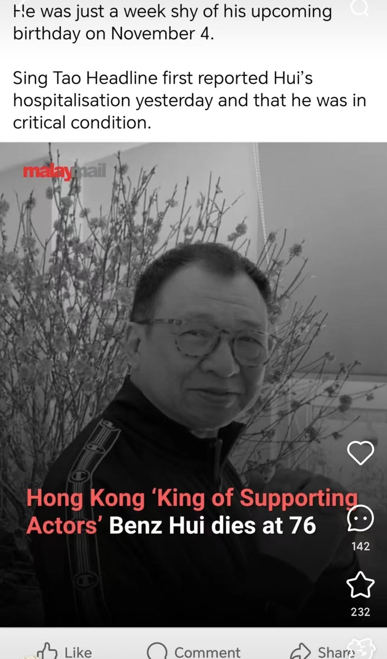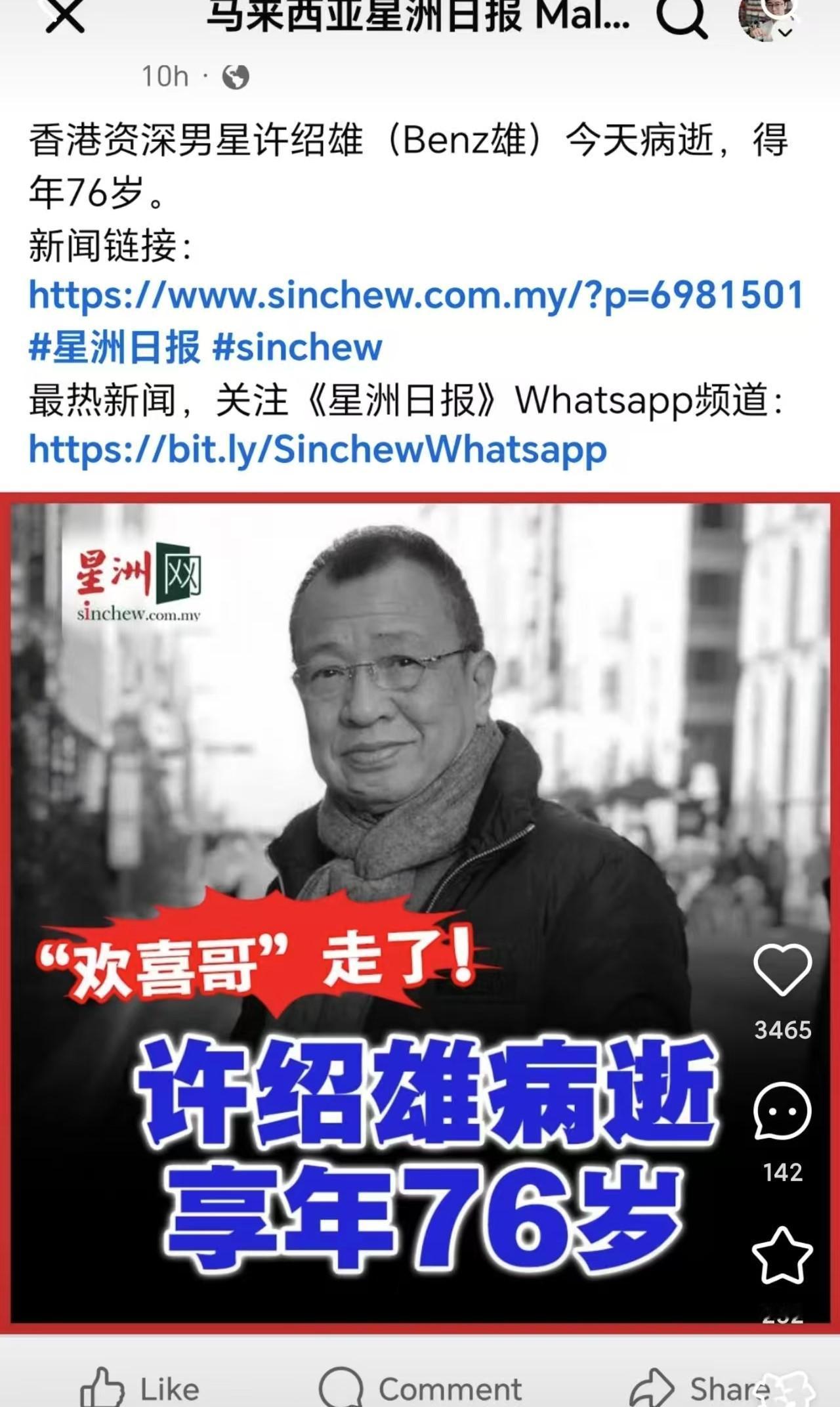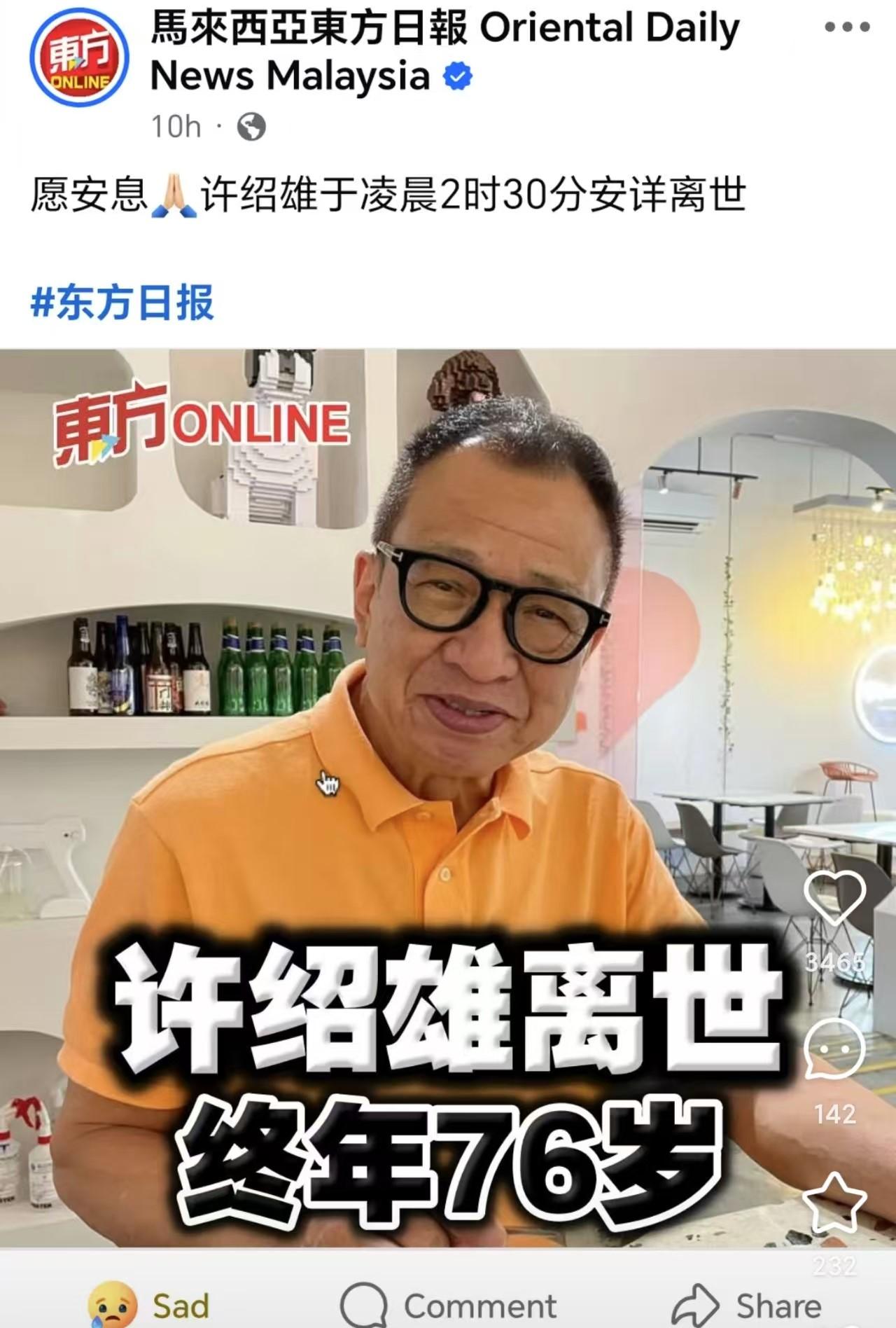 真没想到,许绍雄的影响力如此之大!他去世后,居然在马来西亚都引起了很大的关注,甚至被马来西亚三种语言的媒体都报道了。 很多马来西亚的网友都表示,自己是看着许绍雄影视作品长大的。 虽然许绍雄一直演配角,却因为出色的演技在征服了大量的观众,收获了众多的粉丝,即使在马来西亚这样的外国也不例外。 还有马来西亚的粉丝表示,许绍雄在他的心里不止是金牌绿叶,而是正主,许多电视剧,就是因为有许绍雄参演,他才去追的。 真是不看不知道,原来许绍雄不仅在中国很出名,在海外也同样很出名。 曾经辉煌的TVB,其影响力一度拓展到东南亚的许多国家,比如越南,虽然语言不通,却依然有许多许绍雄的粉丝,越南的一些媒体也报道了他去世的消息。 作为一名演员,能够在身后获得如此殊荣,真可谓是一种莫大的成功了! 永远缅怀许绍雄先生!