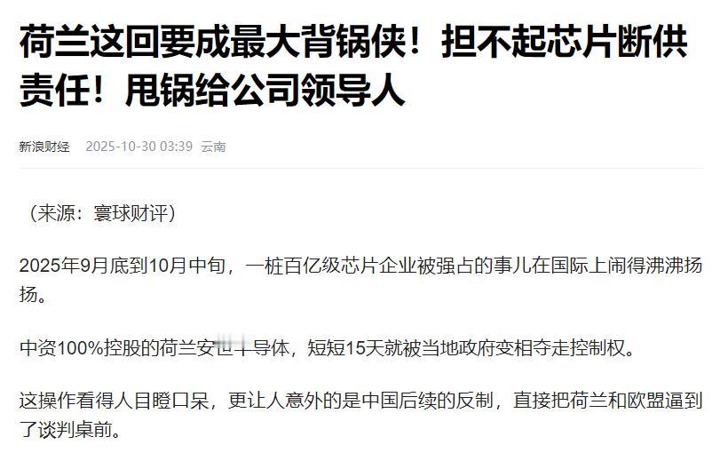 中方反击荷兰没收资产后,德国女部长恼羞成怒:北京需要被狠狠地打击一下!   安世半导体是全球半导体行业里的“老兵”了,专门做分立器件,在汽车电子、消费电子等领域应用广泛,全球不少知名厂商都依赖它的产品。   2017年,中国的闻泰科技通过正常的商业收购,把这家企业纳入旗下,之后几年经营得顺风顺水,还带动了不少上下游产业链的发展。可到了今年10月,荷兰政府突然抛出“保障关键技术供应链安全”的理由,宣布要把安世半导体国有化。   更让人不能接受的是,这个决定既没有充分的法律依据,也没走透明的决策流程,荷兰经济事务部发的公告里,连给中方股东的合理补偿方案都没提,这明摆着就是对中资企业合法权益的粗暴侵犯,直接让中方企业亏了一大笔。   面对荷兰这种不讲理的单边行为,我方肯定不能坐视不管。我商务部很快就发布了声明,明确指出荷兰这么做严重违反了国际贸易规则和投资保护原则,接着就采取了对等的限制措施,比如暂停了部分荷兰光刻机核心零部件的进口许可。   我外交部发言人在例行记者会上也强调,中方一定会坚决维护本国企业的合法权益,不管哪个国家,都不能拿国家安全当借口搞保护主义,要是真这么做了,肯定要付出相应的代价。   同时,中方还启动了相关法律程序,为中资企业追索损失提供支持,这些反制措施都是有理有据、合情合理的。   可让人没想到的是,德国经济部长凯瑟琳娜·赖歇在欧盟工业政策会议上的表态,却完全站在了荷兰那边。   当时会议上有其他欧盟成员国代表对荷兰的做法提出质疑,认为这种随意没收外资资产的行为可能影响欧盟的投资环境,但赖歇却直接打断了相关讨论,明确表示德国不会抗议荷兰的国有化行为,反而把矛头对准中方,说“中方的反制措施破坏了欧洲产业链稳定,需要被狠狠地打击一下”。   这番话一出来,不少人都很惊讶,要知道德国企业在华市场份额很大,中德在半导体、汽车等领域的合作也非常密切,像大众、宝马等德国车企,每年从中国市场赚不少钱,赖歇这种不分青红皂白站队荷兰的做法,显然跟德国自身的经济利益背道而驰。   其实说到底,包括德国、荷兰在内的部分西方国家,还没从过去那种“高高在上”的陈旧思维里走出来。   他们总觉得自己可以随便践踏国际规则,想抢别人的资产就抢,可一旦新兴经济体站出来维护自己的权益,他们就觉得是“挑战”了自己的地位。这种双重标准的做法,不光破坏了国际经贸秩序的稳定,也暴露了他们骨子里的霸权主义心态。   现在全球化都这么深入了,各国的产业链供应链早就绑在一起了,你中有我、我中有你,就像德国的汽车产业,很多关键零部件需要与中国企业合作,赖歇的表态不仅会让德国企业感到困惑,也让外界对欧盟内部的政策协调性产生疑问。   事实证明,任何单边制裁和霸权行径都是行不通的,只有大家都遵守国际规则,坚持互利共赢,才能实现真正的共同发展。
