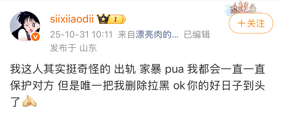原本以为是像我一样,被删除拉黑是最不能忍受的事情,对对方仅存的好感度在此刻降为0。可点开评论区我发现和我不一样,我没对方那么精彩。