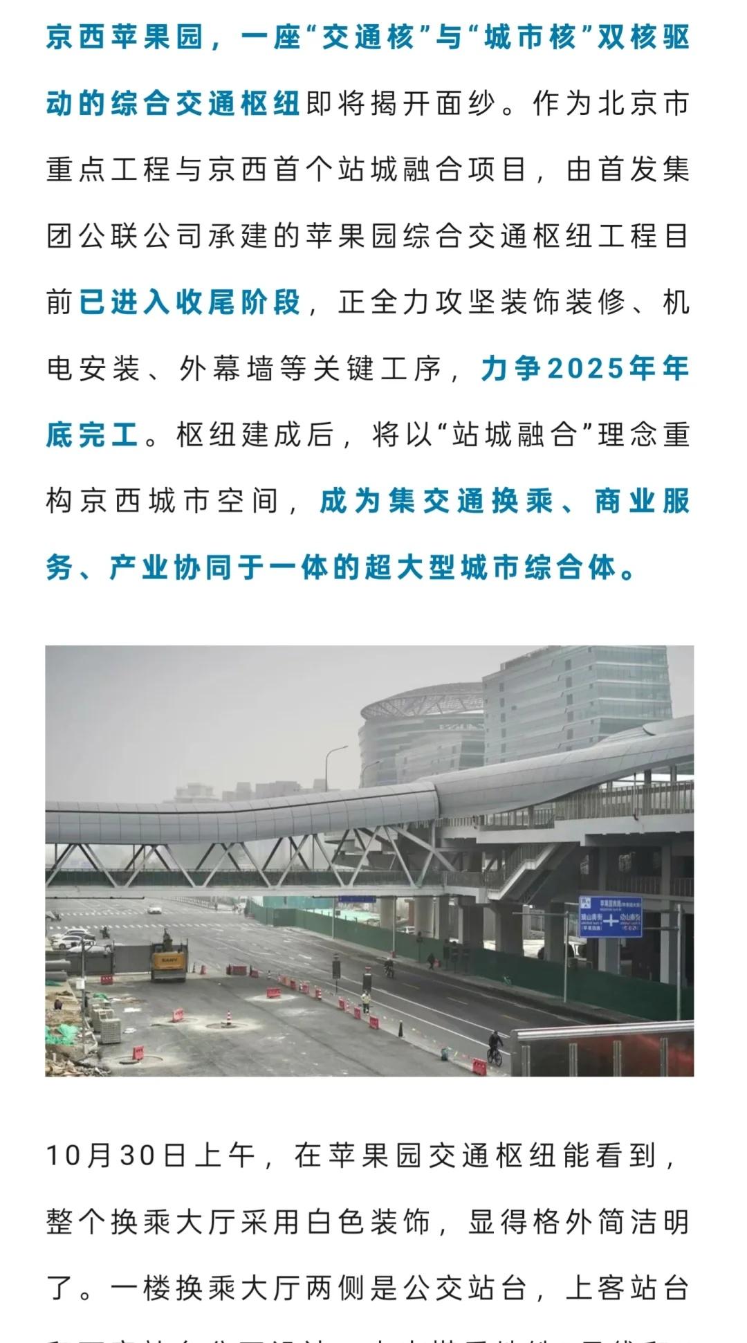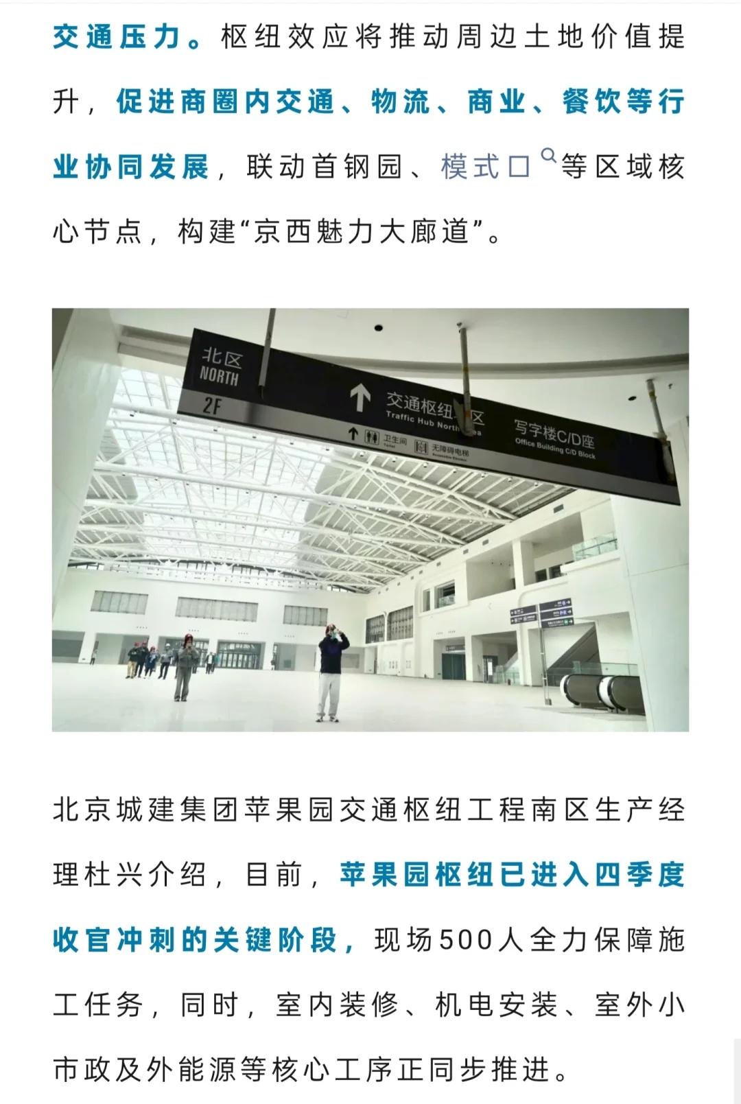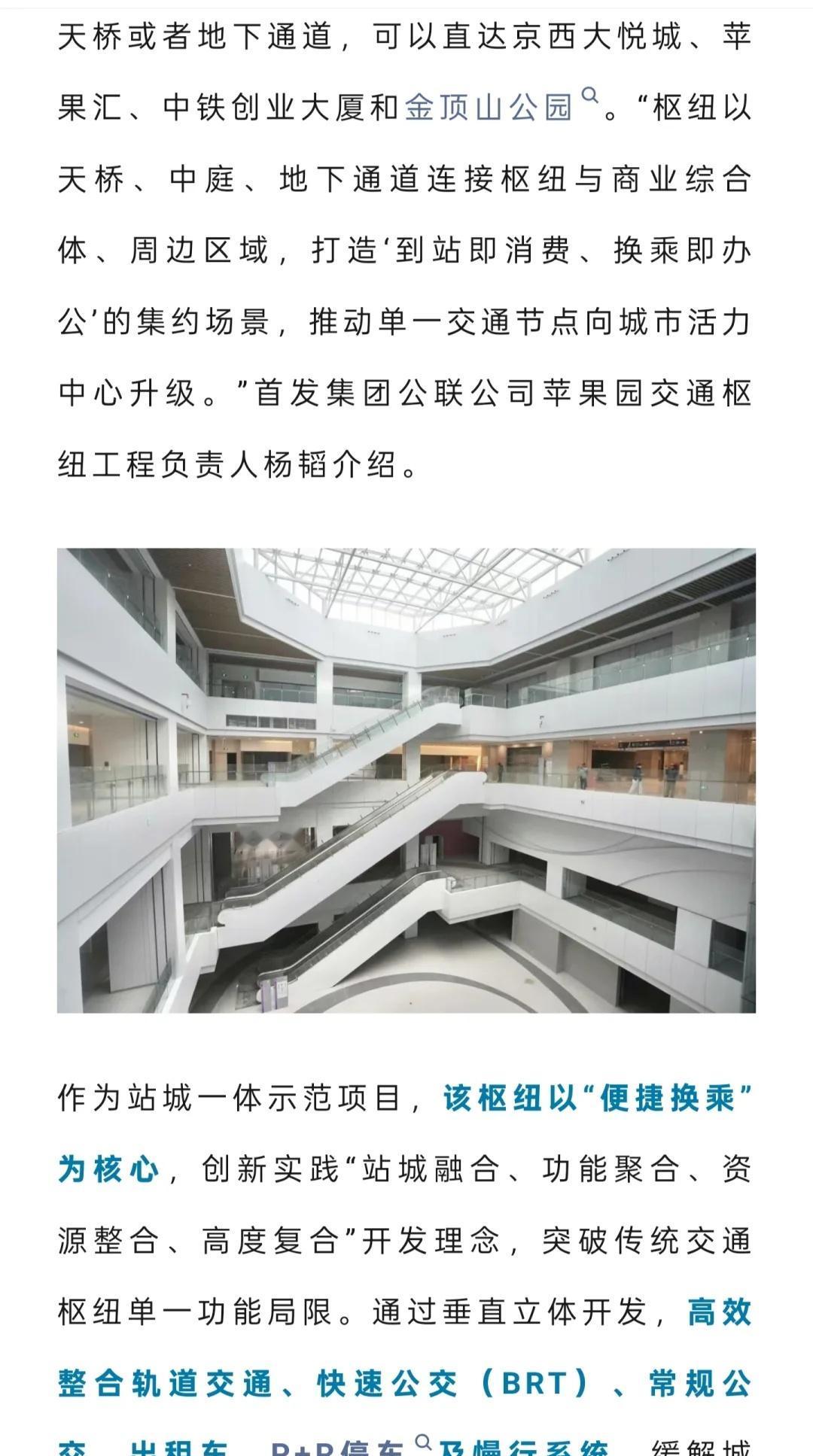 一号线苹果园你总算要活过来了 大大概率年底通车!目前正在收官冲刺阶段。 图中可知是商业交通物流办公餐饮为一体的大型京西标志性建筑。 通过天桥可以直达京西大悦城、苹果汇、中铁创业大厦和金顶山公园。 地铁1号线、6号线、S1线三条轨道交会,这还不得杠杠的! 北京地铁 苹果园地铁站 一号线地铁 地铁