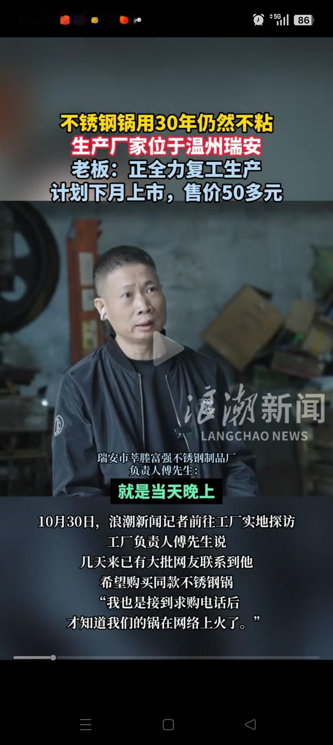 用30年都不粘锅的不锈钢锅老板太狂了!他说:我们做的东西比别人质量好一点,别说用30年,就算50,60年也没问题。 同时他还解释:大概停了有10多年吧,主要原因是因为工资上涨,原材料上涨等,不划算了。 也有网友说了:30年才有顾客来回购,说明老板的锅确实不错,也难怪会停工一段时间。 还是劝大家要理智一点,毕竟已经停产了10多年,设备可能跟不上了,再一个就是现在的不锈钢材质是否能和以前一样也很难说 同时,不锈钢锅是否粘锅,跟个人的炒菜习惯也有很大的关系,并不是每个人都一样。 但是老板说他的锅只卖50-60块钱,那大家还是可以试一下,确实便宜[捂脸][捂脸]