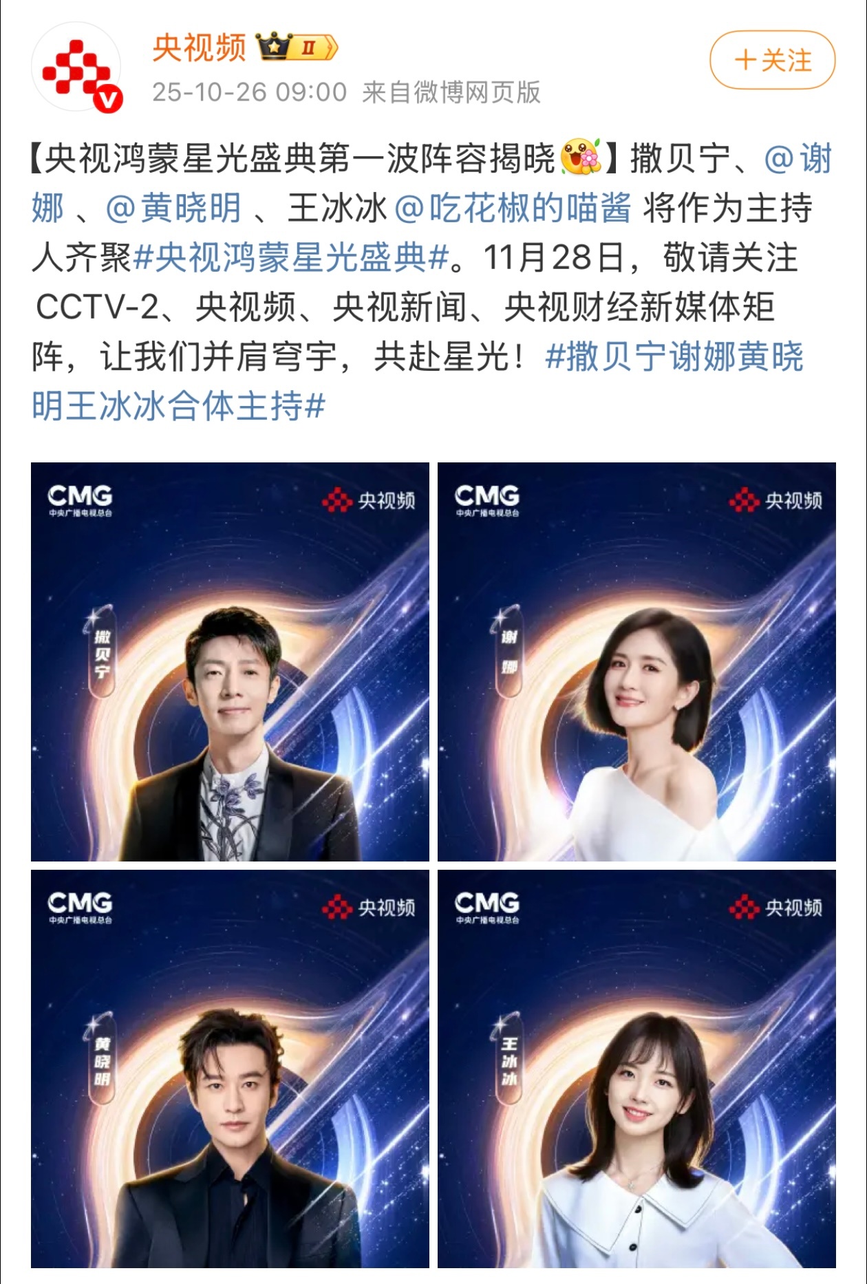 主持人:撒贝宁、黄晓明、谢娜、王冰冰