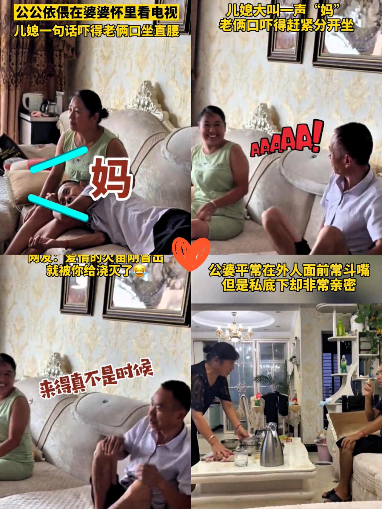 谁懂啊!儿媳刚下班推开门,直接撞见公公依偎在婆婆怀里看电视,俩人手还偷偷牵着,那画面甜得我差点原地退出去! 要知道这老俩口在外人面前可是“斗嘴王者”,买菜为了几毛钱能吵两句,看电视抢遥控器能互怼半天,谁见了都得说一句“这俩老的真不对付”。 结果儿媳就随口喊了声“妈”,俩人手忙脚乱赶紧分开坐,腰板挺得笔直,还假装淡定换频道,那心虚的样子快把我笑死!爱情火的苗刚冒就被我灭了 原来平常的斗嘴都是“保护色”啊,私底下的亲密才是真面目!老一辈的爱情真有意思,嘴上不饶人,心里却把对方疼得不行 两性情感