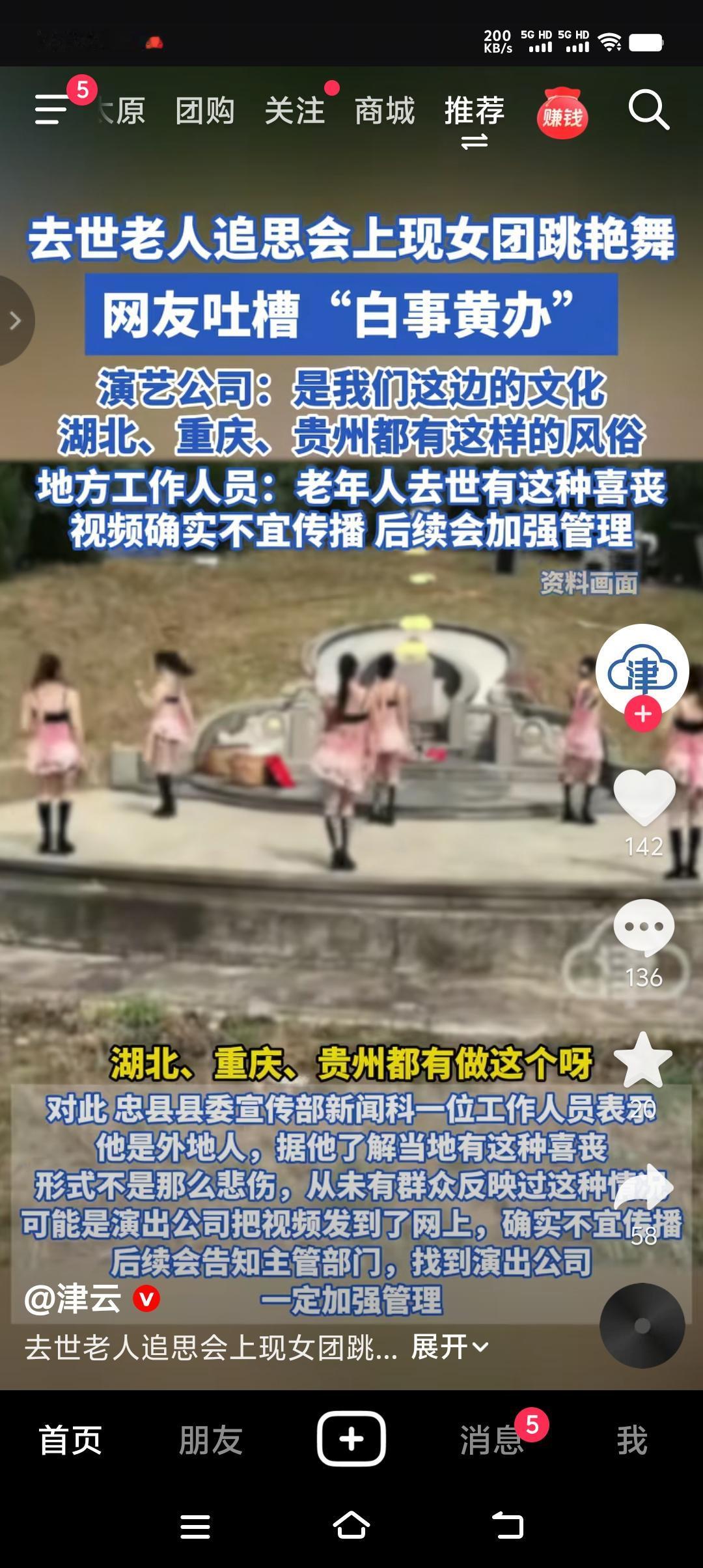 “白事黄办”就是在老人办白事的这一天,出现了一些让人颠覆三观的场面,一群衣着暴露的年轻女子载歌载舞、卖弄身姿。据说这是当地的风俗,老年人去世后有这种喜丧,流传于湖北、重庆、贵州等地。 不管是不是喜丧,不管有没有这样的风俗,毕竟是丧事,毕竟每个人心情都是沉重的。真不知道作为子女的用这种低级娱乐方式送老人最后一程,是出于孝顺还是为了博的众人眼球?好像不管什么原因,丧事上出现跳艳舞,不仅是对逝者不尊重,更是一种伤风败俗。