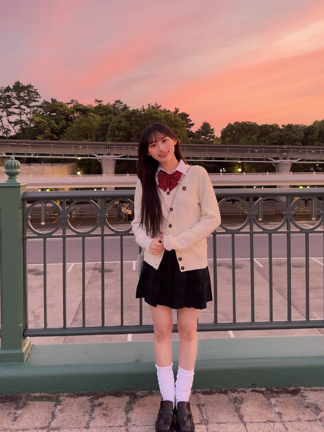 川﨑桜「今年のハロウィンは学生最後の思い出に制服を着てみました☺︎茜色の空が、すごく綺麗だった」