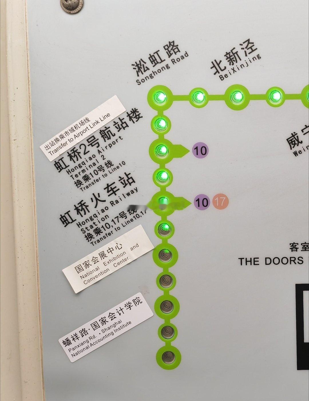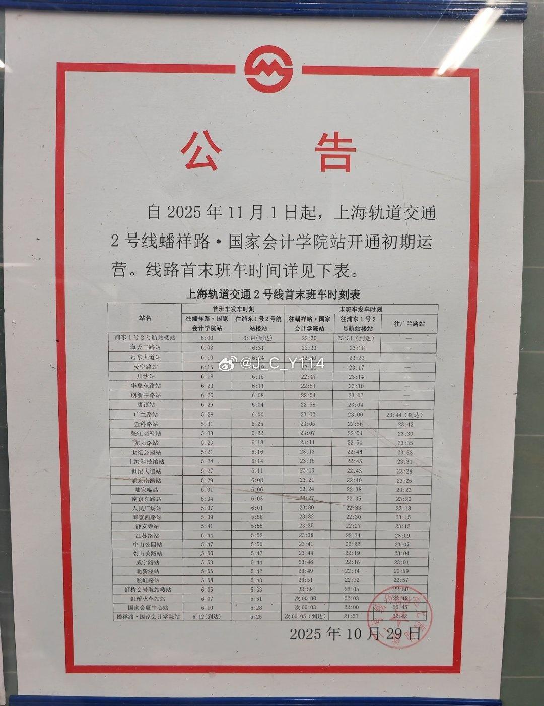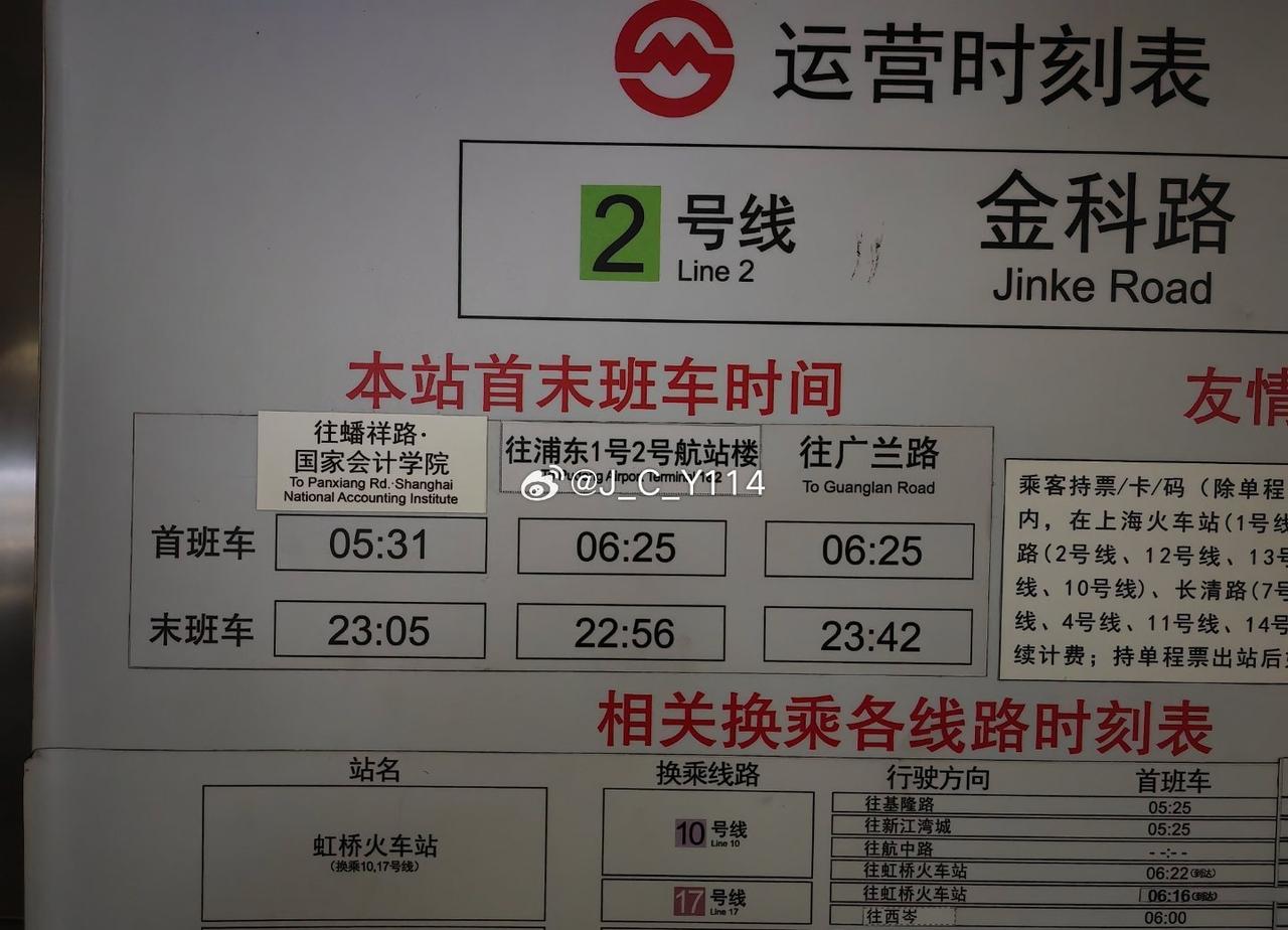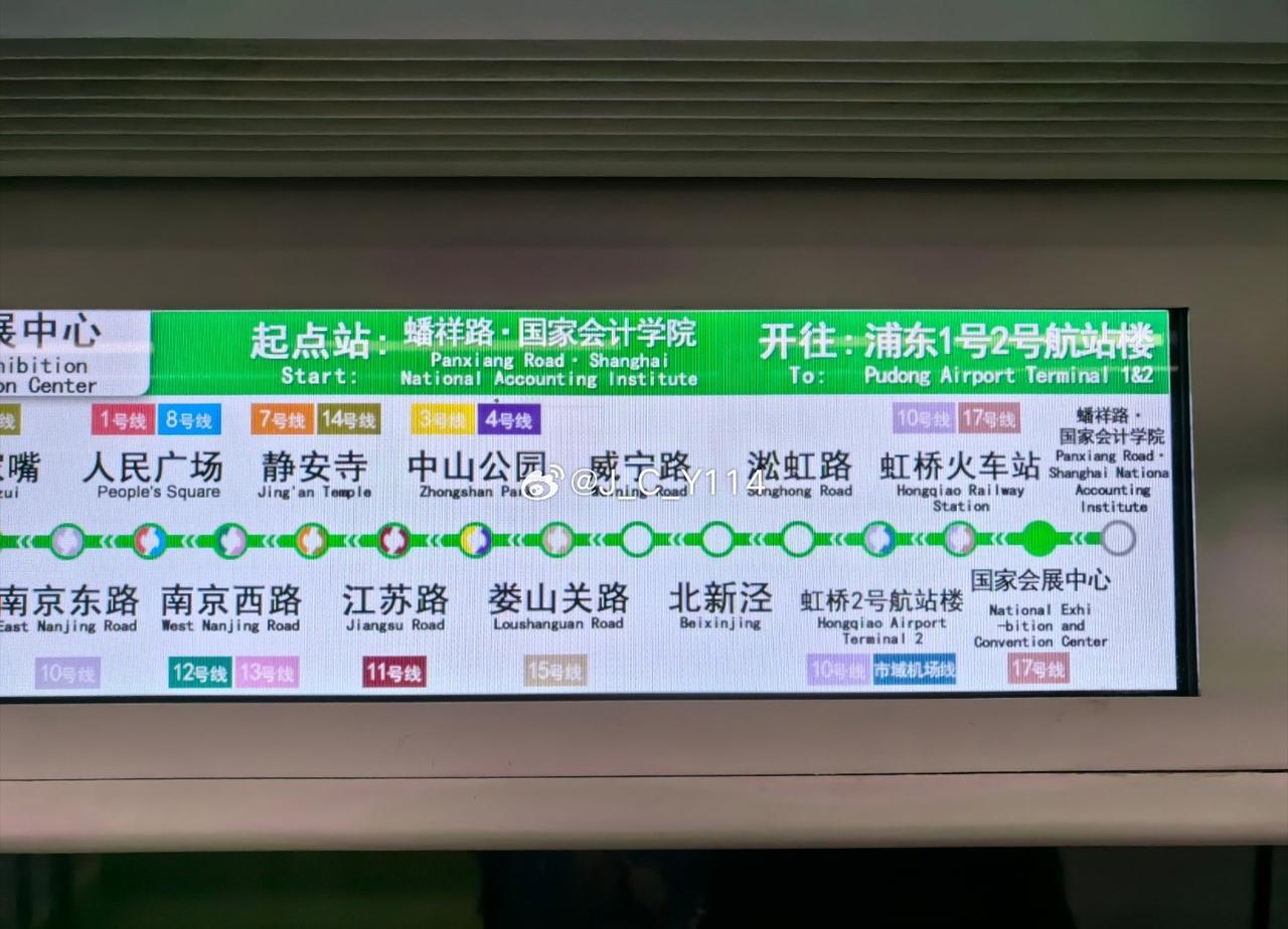 蟠祥路·国家会计学院导向逐步上线中 本周开始逐步更新导向,为即将开通的新站做准备。 更换概况: 2号线独有的方向指引、线路图全部换新,但02A03、02A04的闪灯图为贴纸。出入口贴的首末班车时刻表全部换新,但售票处贴的换乘站时刻表为贴纸。站层图、街区图采用贴纸,但部分车站也因为其他原因新换了站层图。 线网图采用贴纸。站台贴的背光线网图采用透明底的“·国家会计学院”贴纸,但因为部分贴纸和“市域机场线”冲突,因此需要手动撕开换行处理。车内贴的线网图采用不透明的“蟠祥路·国家会计学院”贴纸。 轨道交通地图换新,同步上线了预计年底开通的18号线二期。 票价表换新,仅包含2号线西延伸,年底18号线二期开通时需要重算票价并更新票价表。 纸质公告于本周中逐步在全网各站上线。 2号线车载的电子报站、显示屏原则上应该在开通前一天晚上完成刷新,但此前已有部分列车已上线。