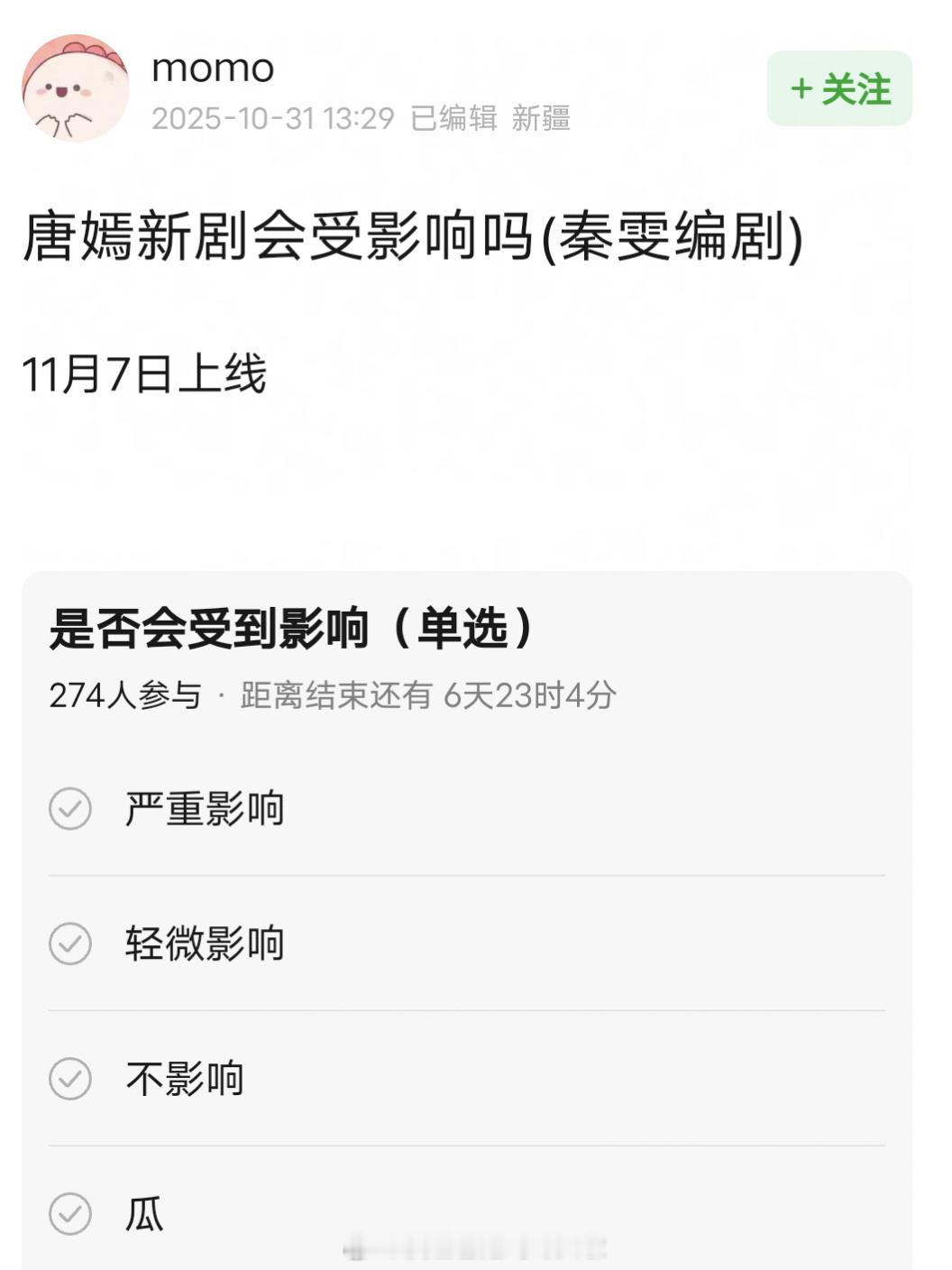 唐嫣新剧《爱情没有神话》,编剧就是秦雯,11.7上线。