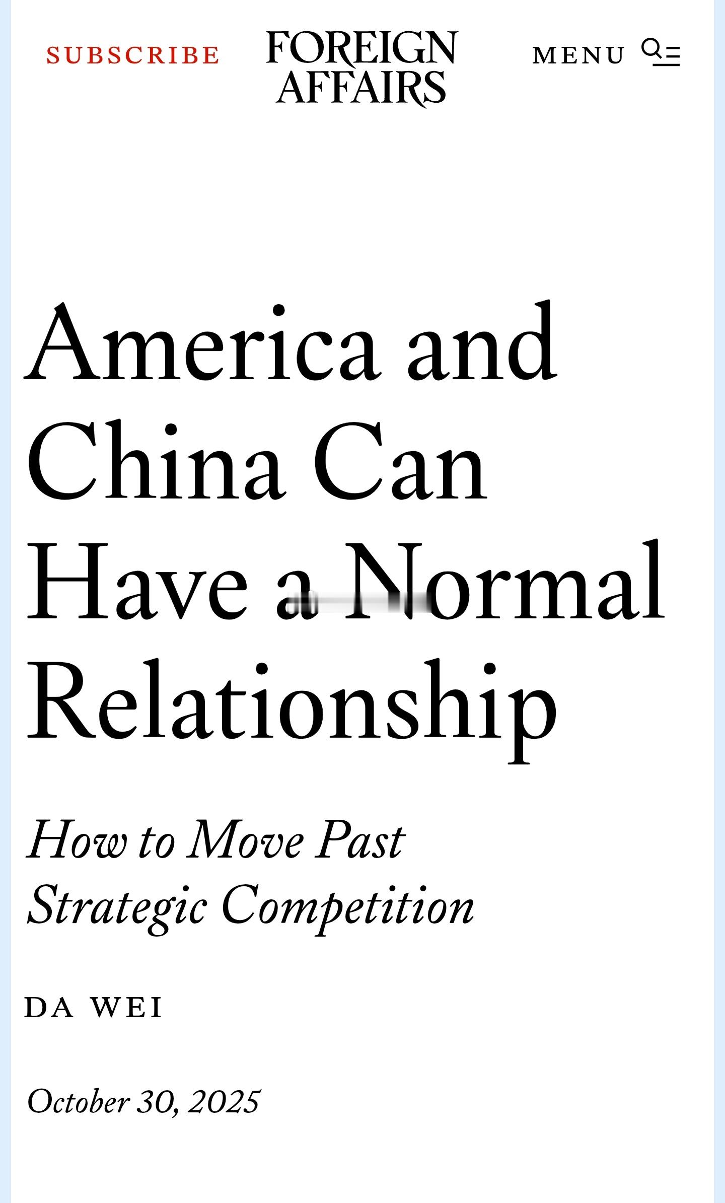 美国《外交事务》杂志昨天发了两篇长文,一篇是《美国和中国可以建立正常关系——如何