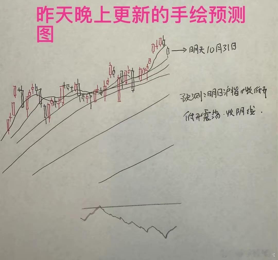 关于下周星期一走势的手绘预测图,莎莎将会在星期天上午更新。