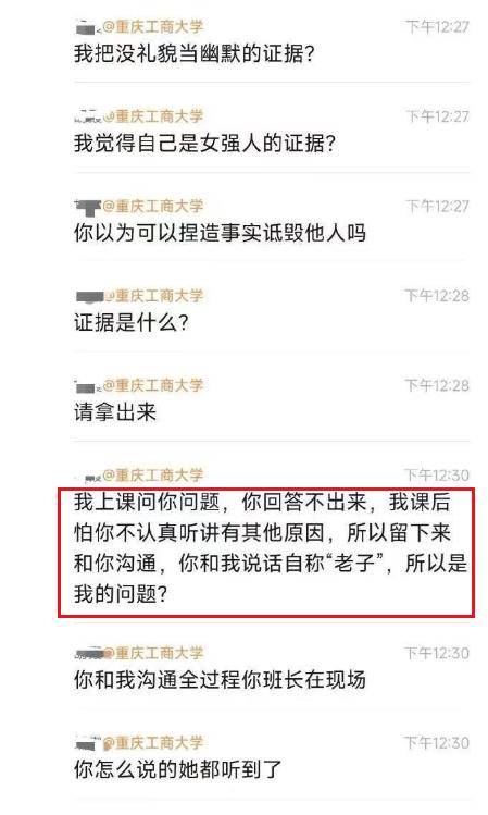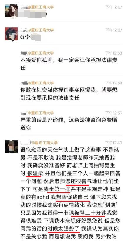 看到重庆工商大学女学生网暴老师事件,给我气的不行,但是女老师的做法堪称一堂深刻的“法治公开课”。 上过大学的都知道,很多课,坐一排是因为来得最晚没其他座了,只好坐第一排而且学工商管理,连子公司和分公司的区别都不知道,这种小仙女考上大学就已经放飞了,心思不在学习上,但要是谁说她,她能蹦跶几米高喊冤! 道歉还夹带私货、避重就轻,说老师提问男生温柔客气,那就是变相说提问自己就不温柔不客气呗,还说老师骂了自己20多分钟,这不就是引导舆论吗这种小心思,在经历过社会毒打的打工人眼里,甚至比短剧里的绿茶发言更明显! 有些女生,别看外表一副柔弱,心肠可不是一般歹毒,只有亲身经历过才能明白,她们的内心是如此的恶毒,蛇蝎心肠形容一点不为过!