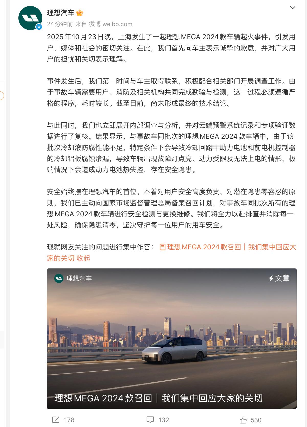 11411辆车 更换冷却液、动力电池和前电机控制器。。。这个代价太大了。其他家的宁德时代麒麟电池估计也都出或已经出排查结果了。。。MEGA2024款电动汽车部分召回