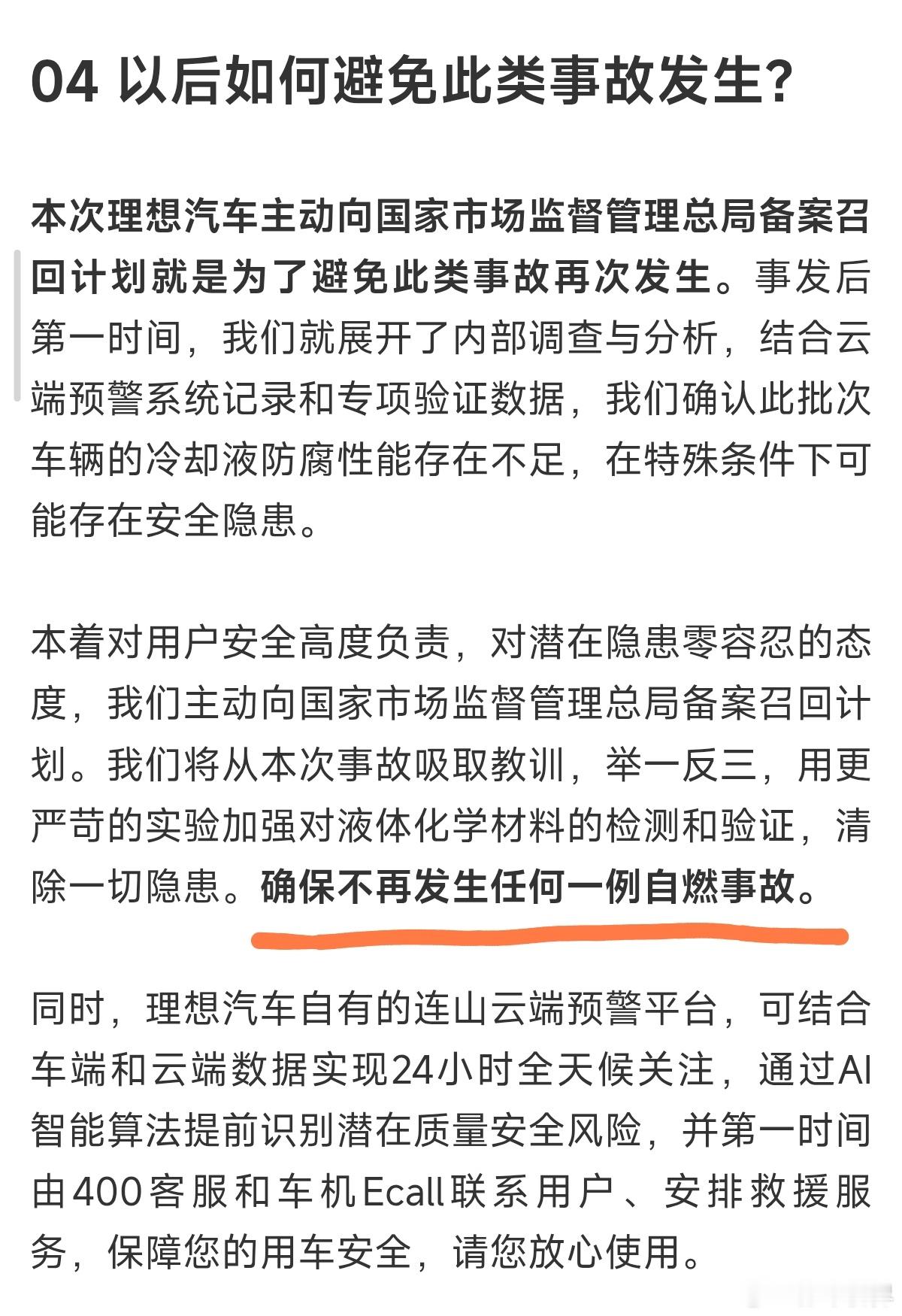 官方发声里有这么一句话:「确保不再发生任何一例自燃事故」。