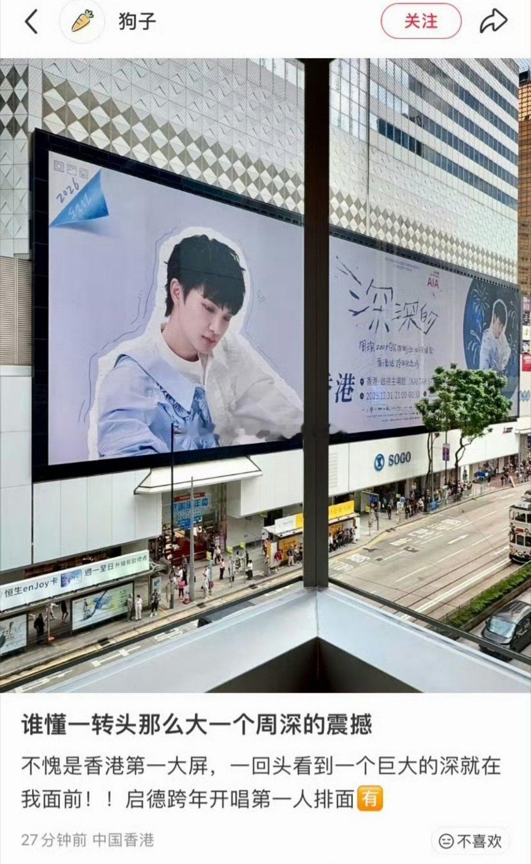 香港街头已经随处可见周深跨年演唱会的大屏了, 内地歌手首登启德主场的含 金 量还在上升[举手]