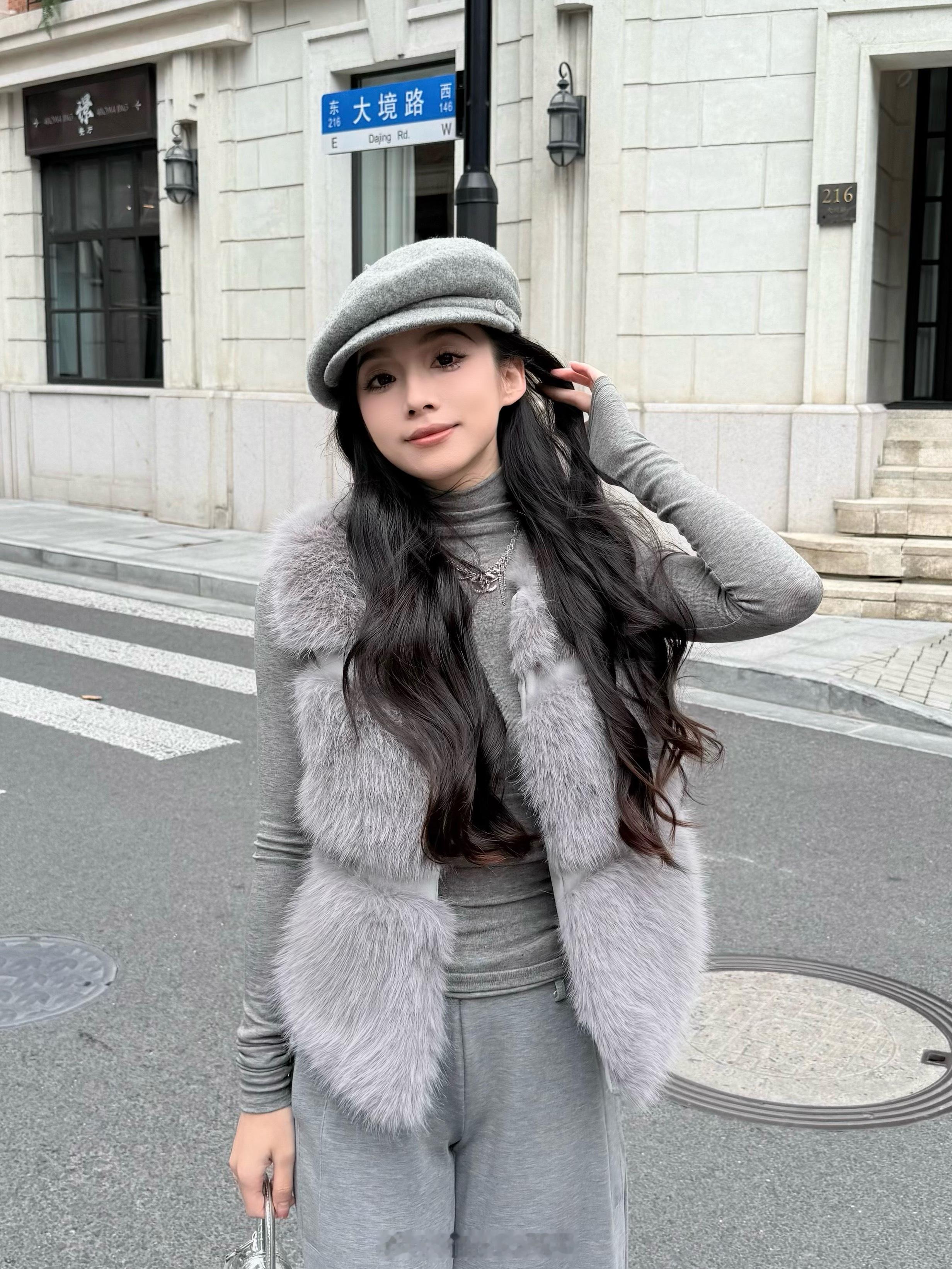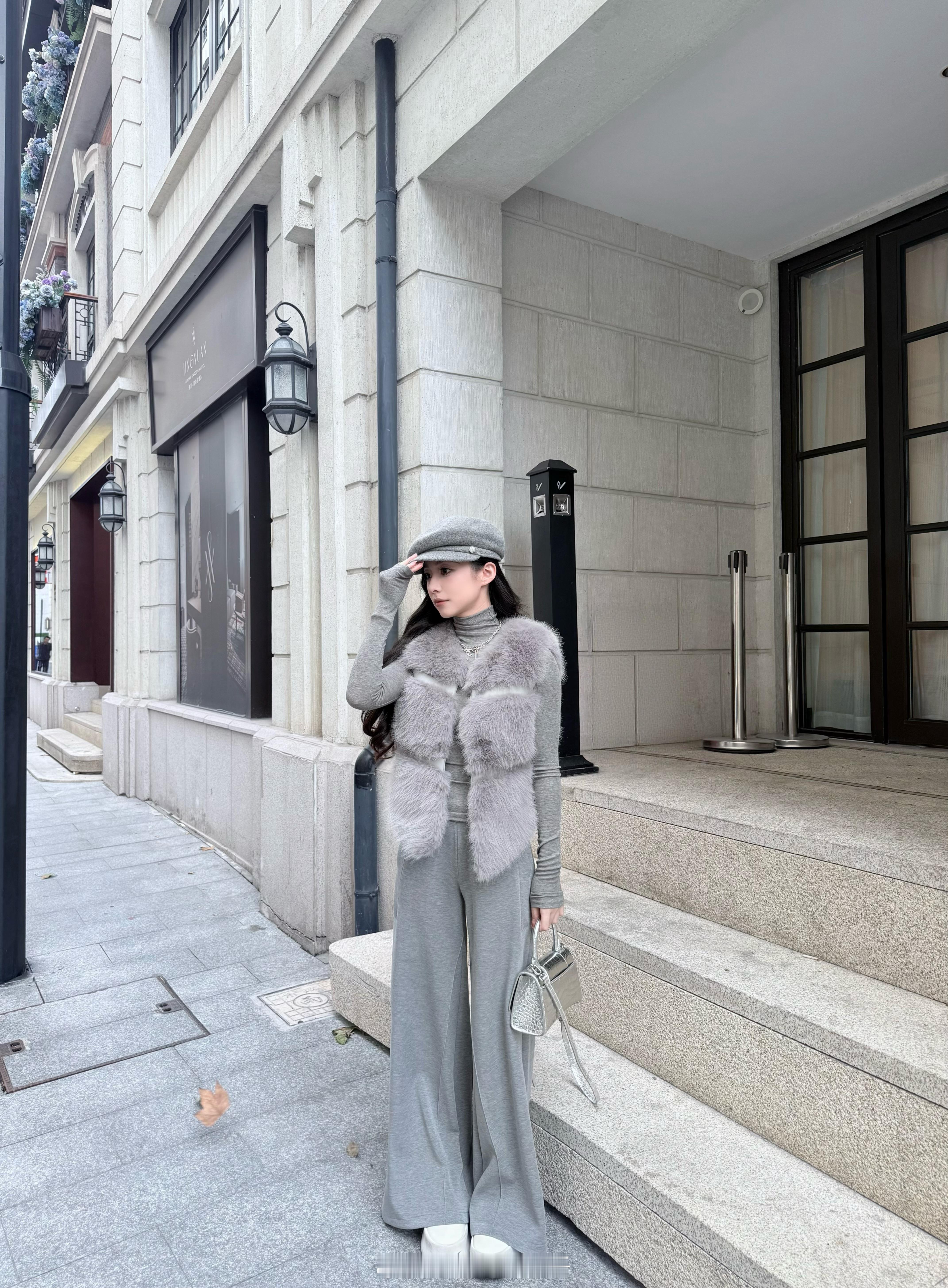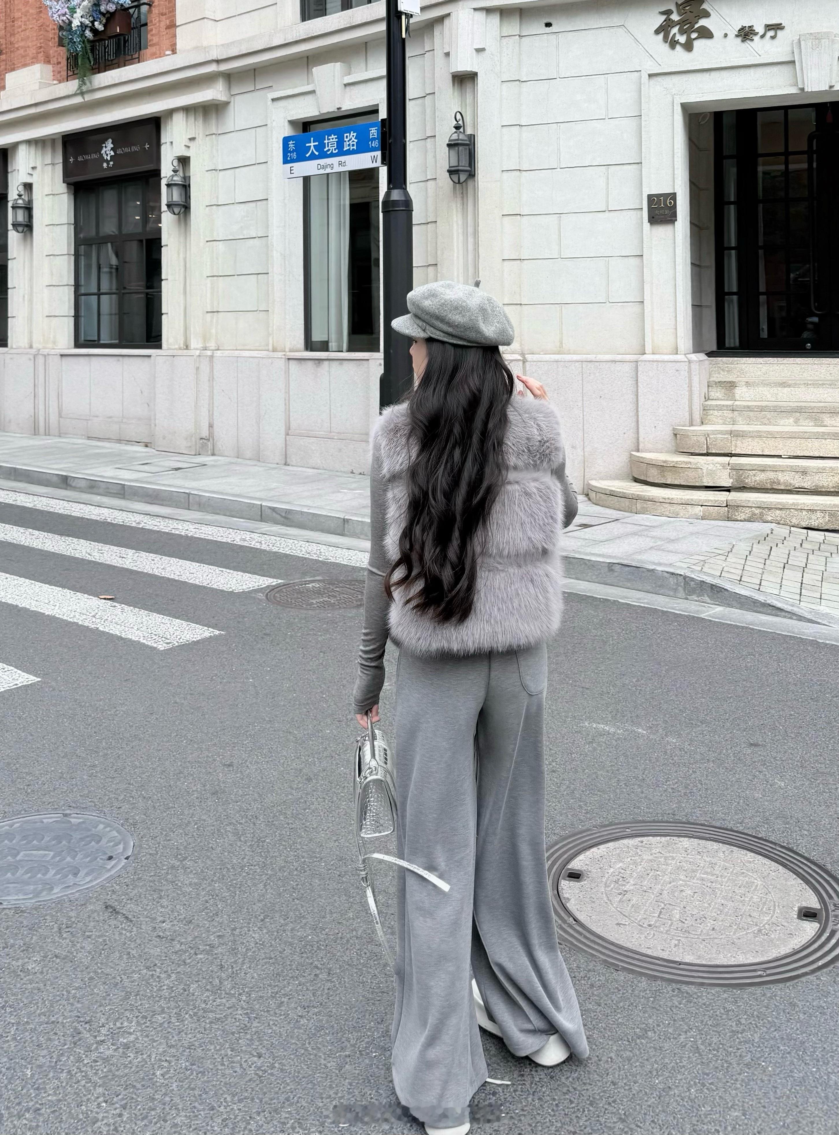 马甲环保皮草毛质很柔顺蓬松,里面的内搭打底真的贼显瘦!!天丝材质非常柔软亲肤后面还会出黑白色,建议人手一件!!下面的裤子也是很遮肉的好版型,空气棉的材质舒服到没边~「Zan里揪☝🏻打底衫」