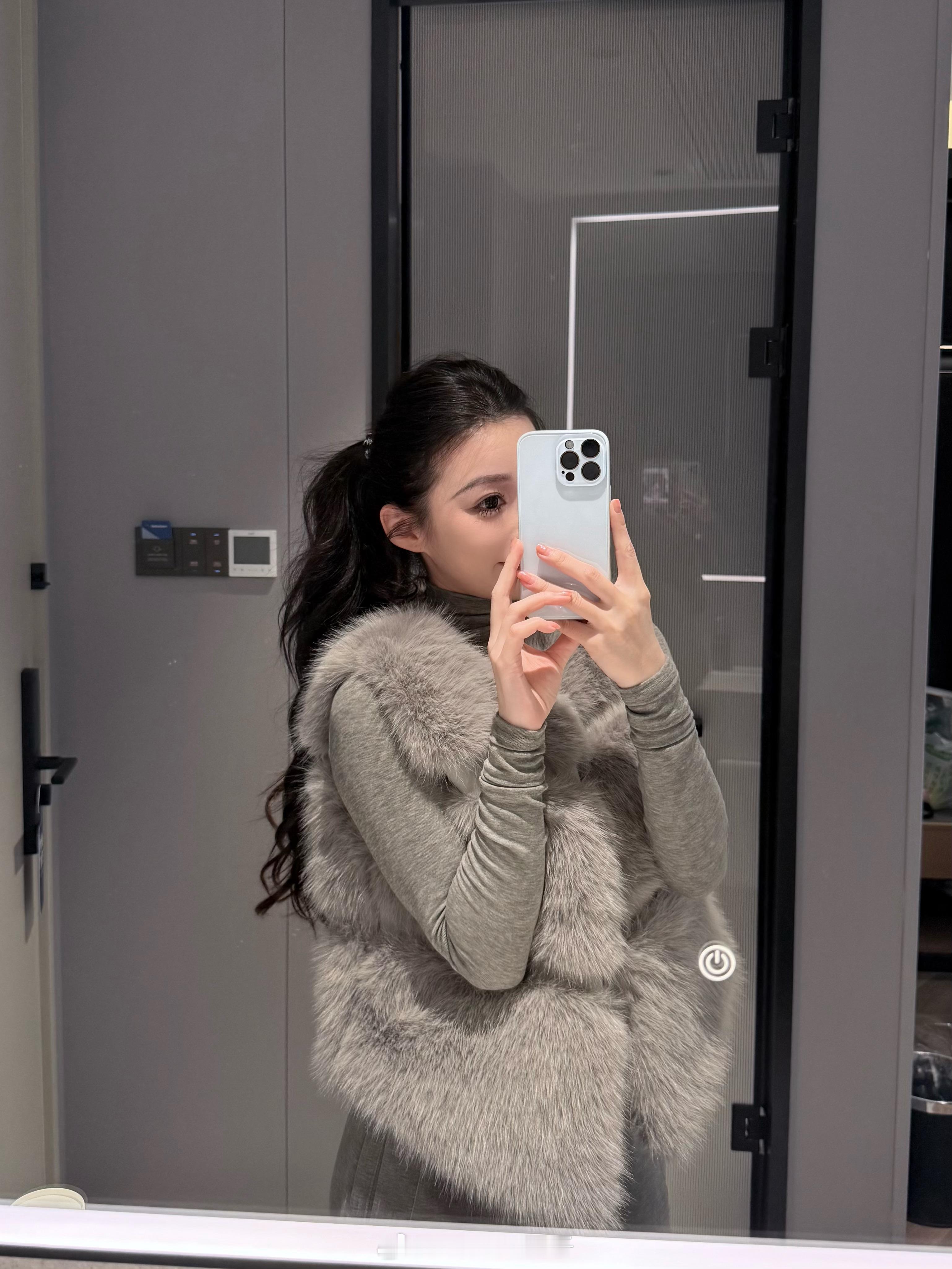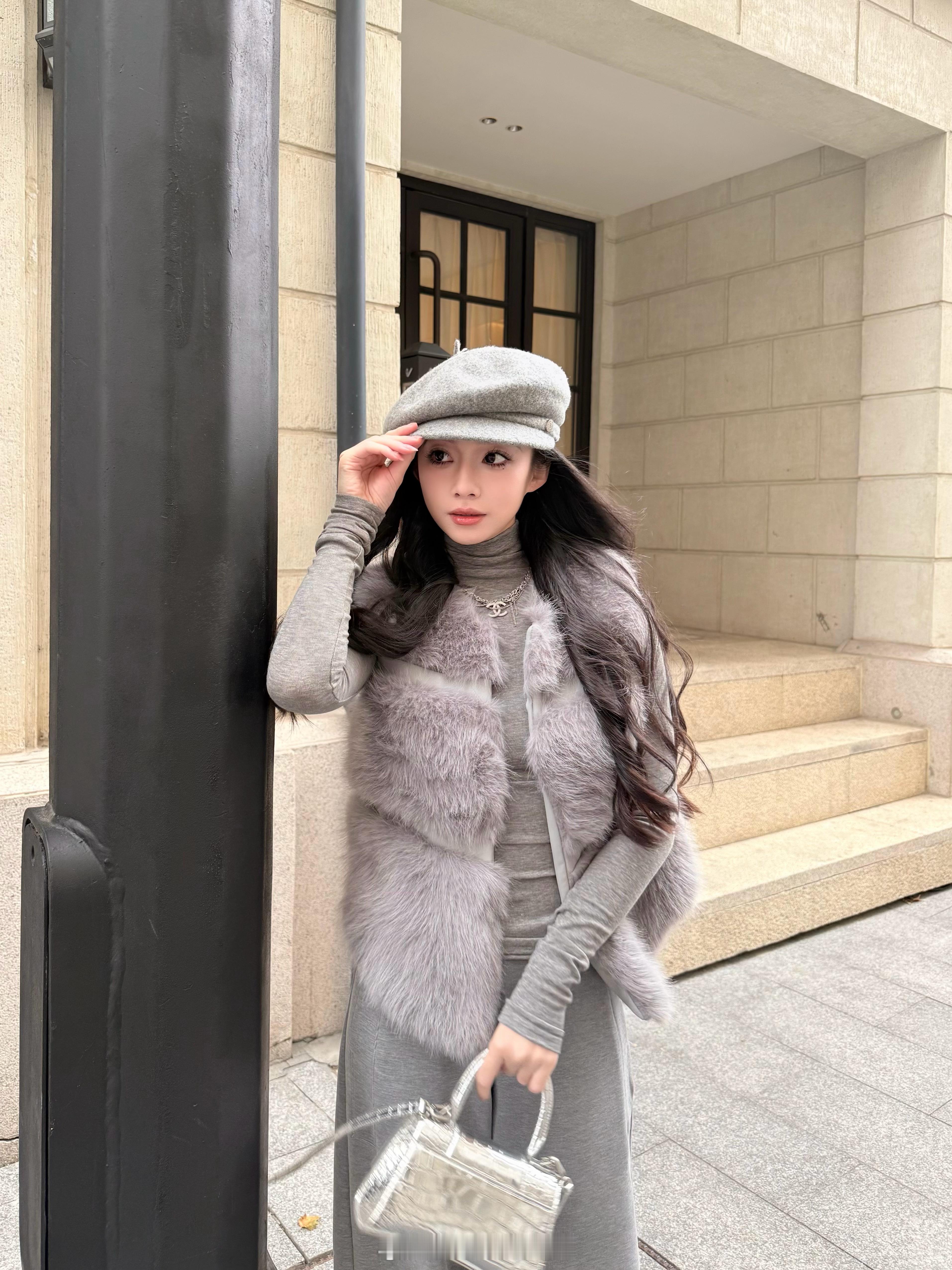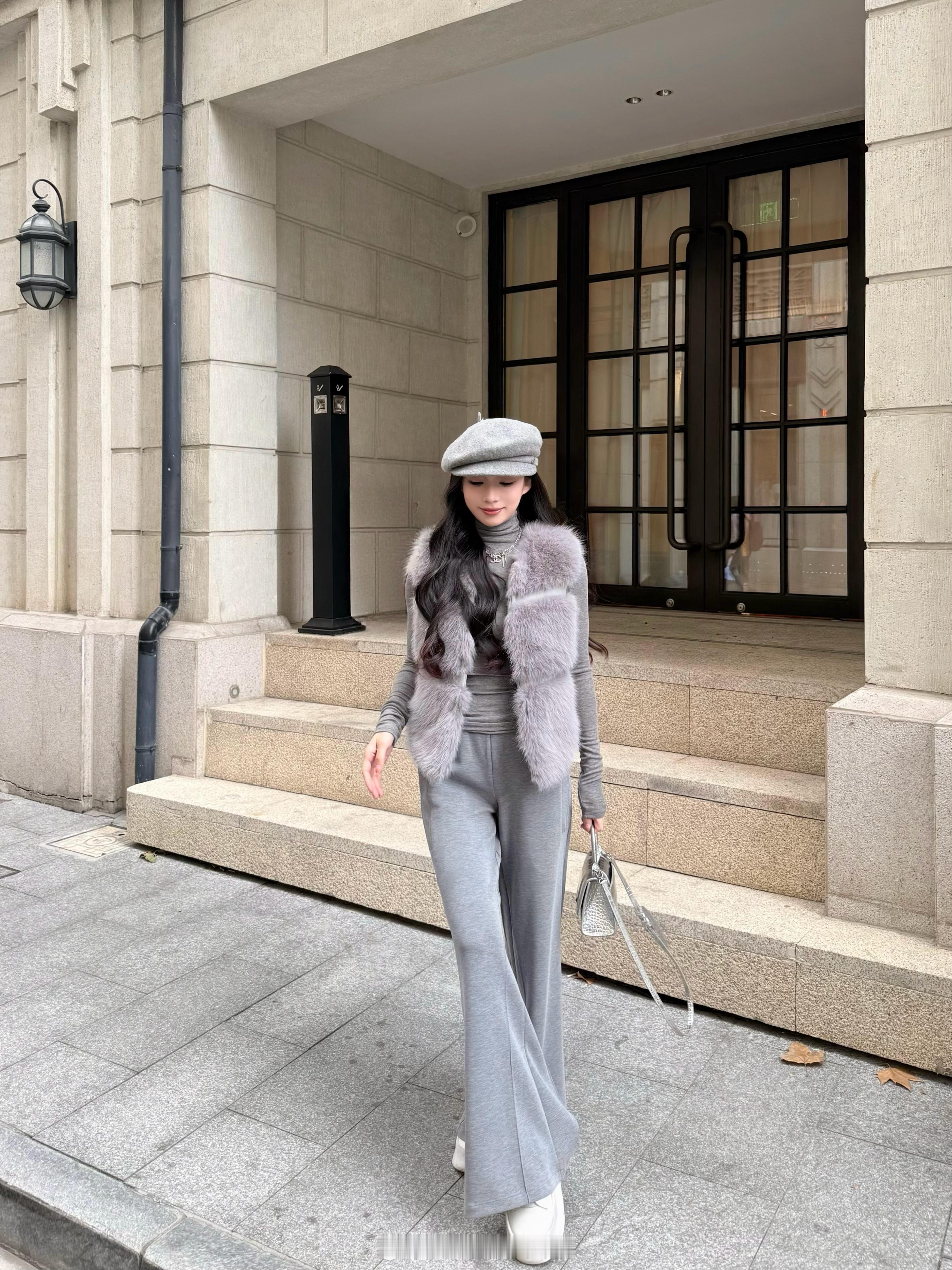 马甲环保皮草毛质很柔顺蓬松,里面的内搭打底真的贼显瘦!!天丝材质非常柔软亲肤后面还会出黑白色,建议人手一件!!下面的裤子也是很遮肉的好版型,空气棉的材质舒服到没边~「Zan里揪☝🏻打底衫」