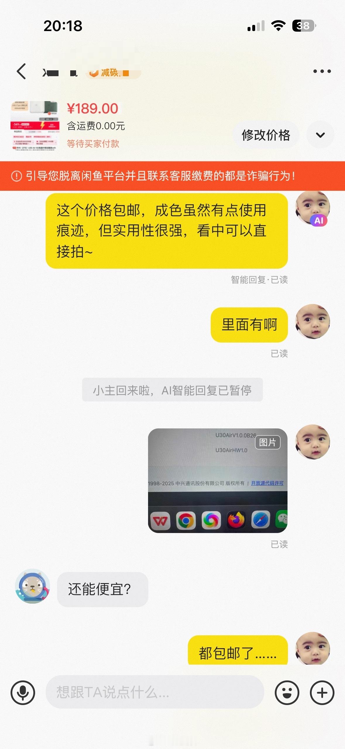 我在海鲜市场卖点东西,本来标价200,自己降价11块钱,卖189,有两个人看到了我降价,问我还能不能再降价……