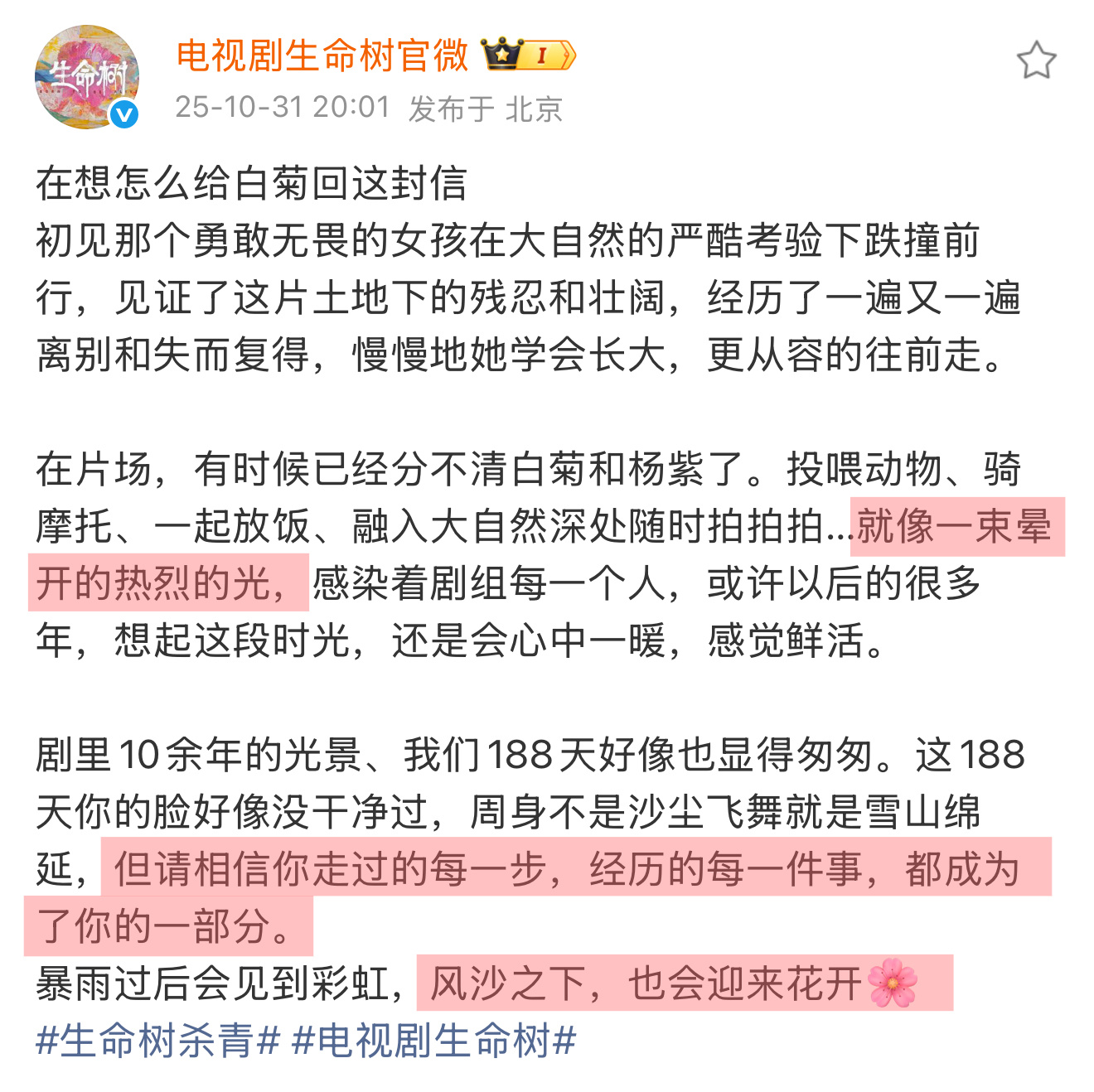 剧组里的小朋友说紫温柔得像小云朵,小树说紫像一束晕开的热烈的光,是真心的喜欢才会用出来的形容[拜托]