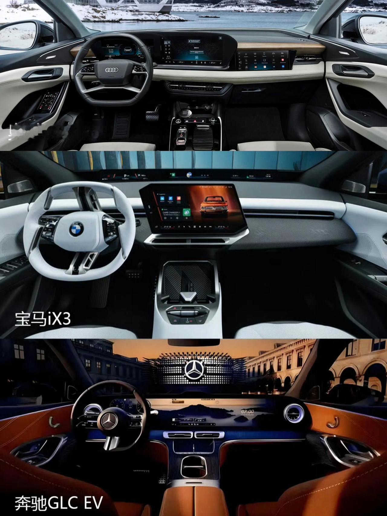 BBA下一代SUV设计语言,谁更能打? BBA的下一代SUV设计基本定型,预计2026年陆续登场——宝马次世代iX3、奔驰GLC EV、奥迪新Q5L,这三款可以说代表了德系豪华阵营的“设计风向标”。 这次三家走的路子明显不一样。奥迪依旧稳,走保守路线,线条简洁、比例匀称,看着不惊艳但耐看,典型的“越看越顺眼”型。奔驰则彻底放飞自我,新GLC EV大量采用曲面和封闭式格栅设计,未来感拉满,但也有网友吐槽有点“太圆润”,少了点老奔驰的那种力量感。宝马则一如既往地“我行我素”,新iX3的造型继续强调运动和科技结合,大鼻孔虽然被收敛了一些,但整体还是很有辨识度。 从趋势看,电动化时代的BBA都在探索如何平衡品牌传统与新潮科技。奥迪稳扎稳打、宝马敢于突破、奔驰走感性路线。至于谁更好看?我觉得答案取决于你更看重什么——想要稳重选奥迪,追求个性选宝马,喜欢科技氛围选奔驰。 你更能接受哪种设计?评论区聊聊,看看大家眼中的“最强BBA颜值王”是谁。