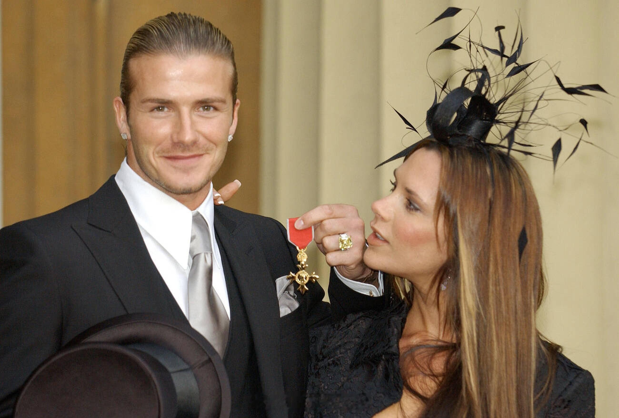2003年11月27日,大卫贝克汉姆在白金汉宫举行的授勋仪式上被伊丽莎白二世女王