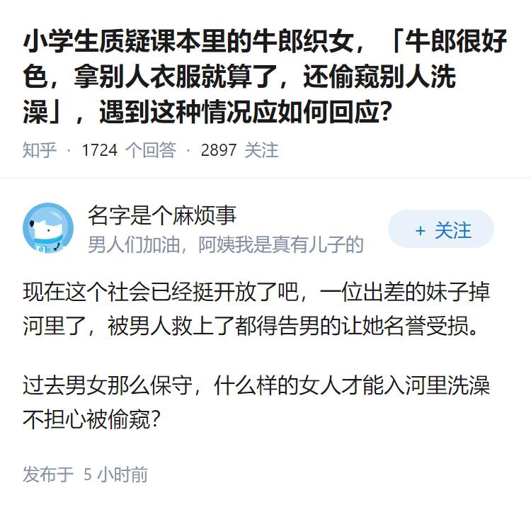 小学生质疑课本里的牛郎织女,「牛郎很好色,拿别人衣服就算了,还偷窥别人洗澡」,遇到这种情况应如何回应?
