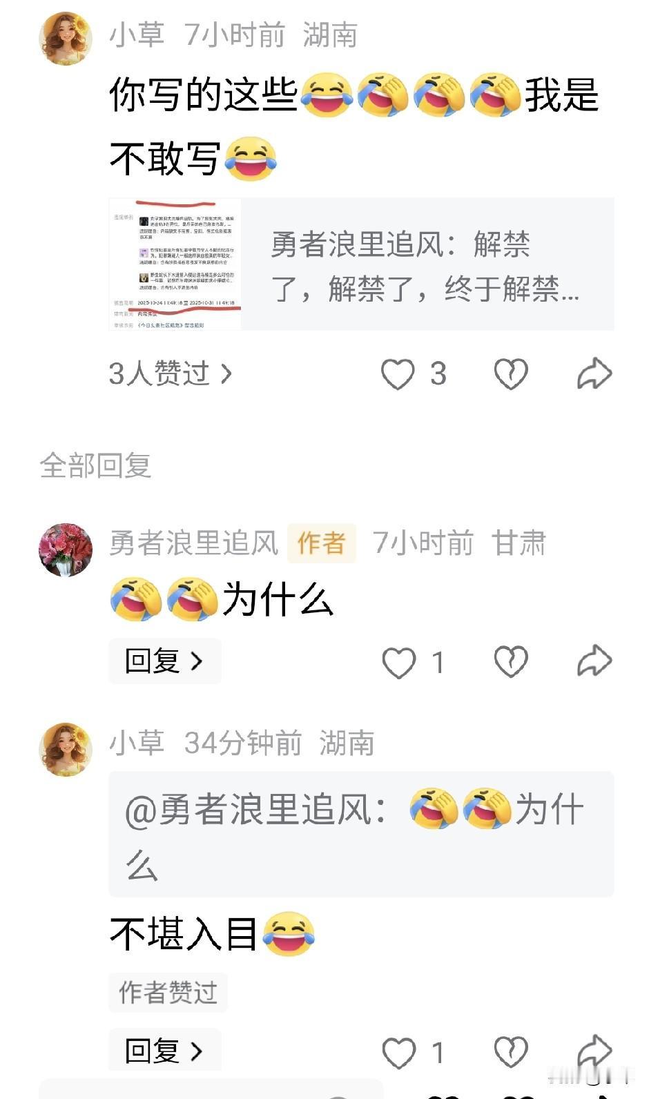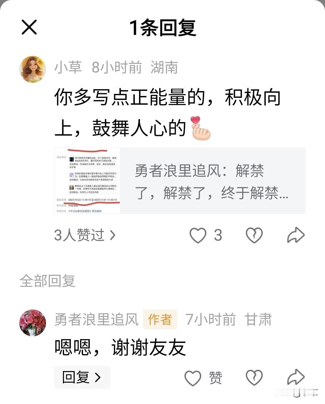 刚才一个网友说自己被禁言了, 我进去一看,他写的这是什么[捂脸][捂脸][捂脸] 有点不堪入目[笑哭] 怪不得禁言。 我告诉我老爹,他说太无 聊了,怎么能写这些呢[笑哭] 我觉得也是,我没看过此类的文章,我一般都是看正能量的。 所以一般都不会给我推荐这些…… 我觉得虽然 平台讲究百花齐放,百家争鸣, 但是你还是要本着初心,善心,真诚的心❤,去写你的所感所想,而不是胡写八写,胡编乱造, 你们说是不是这个道理?