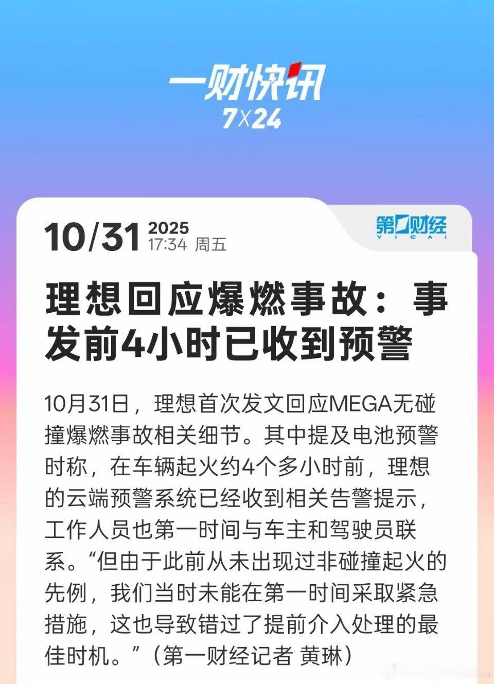 第一财经: 理想称起火前4小时已收到预警!