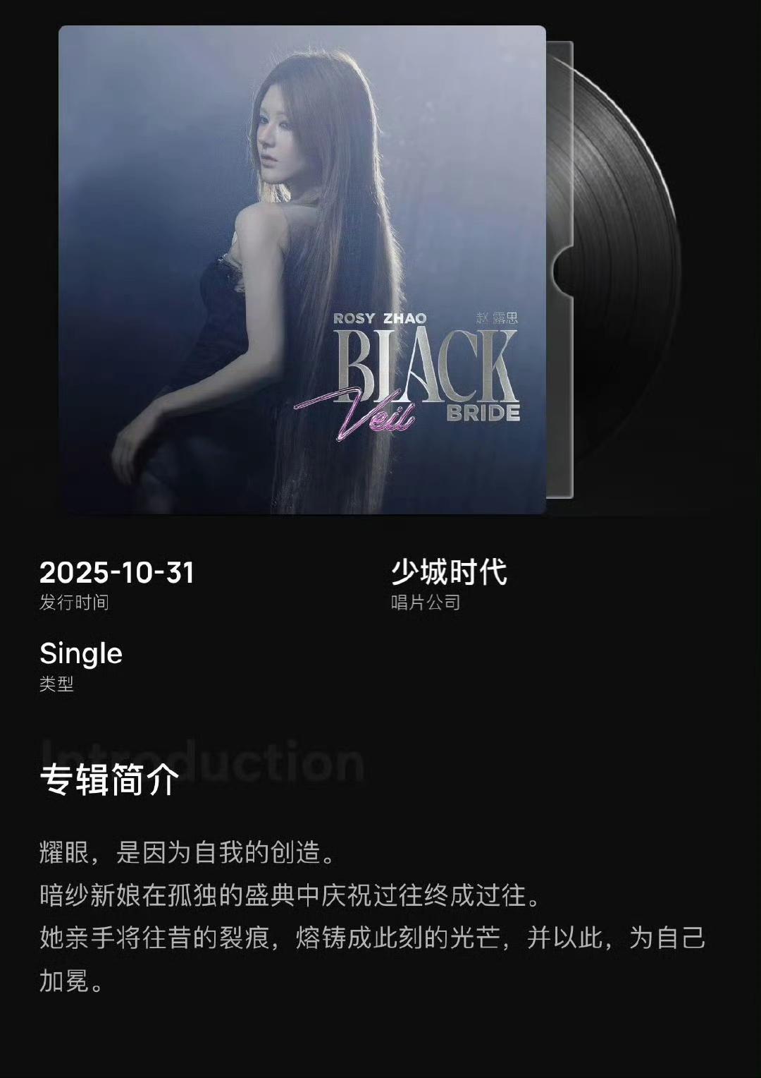 赵露思新歌《Black Veil Bride》太好听了,循环中! 这首歌实在是太惊喜,不说赵露思的热度和流量,几位制作人都是格莱美的顶级制作人,更是有着与布兰妮、LadyGaga、比伯、权志龙合作的履历,人声制作更是牛,同迈克尔杰克逊合作过。这次更是因为张露思身体原因,特意来到成都。而国内合作的公司则是少城时代,一手捧红张靓颖等歌手。 回到赵露思新歌,真的节奏太上头,循环中! 赵露思 赵露思新歌 赵露思新歌制作人