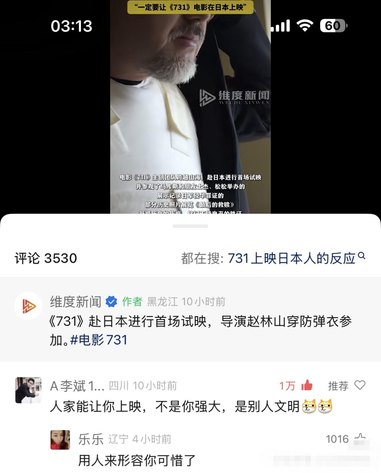 赵林山穿防弹衣出席《731》日本首场试映!