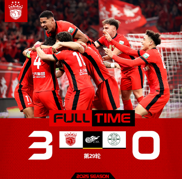 2025华润饮料中超联赛第29轮,上海海港3比0浙江俱乐部绿城 。比赛第12分钟,刘若钒右路送出传中,造成对手自摆乌龙。第31分钟,刘若钒禁区外转身射门,可惜皮球击中立柱。半场结束,海港队1比0领先对手。易边再战,第50分钟,李帅传中吊向右路,王燊超一脚凌空世界波破门,为球队扩大比分!第72分钟,维塔尔主罚任意球直接破门!第82分钟,对手通过定位球打入一球,VAR介入后,判定越位在先进球无效。最终,海港队3比0战胜浙江队。感谢现场球迷们不遗余力的呐喊鼓励,同时感谢电视机前并肩作战的家人们!下一场,海港队将于11月4日(周二)迎来客战武里南联的亚冠精英联赛第四轮比赛。