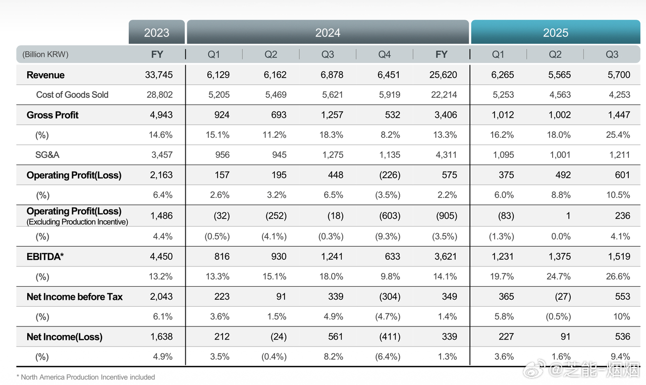 LG 新能源 Q3 表现亮眼!营收和利润环比双增,营业利润率约 10.5%,扣除补贴后盈利也有实质提升。