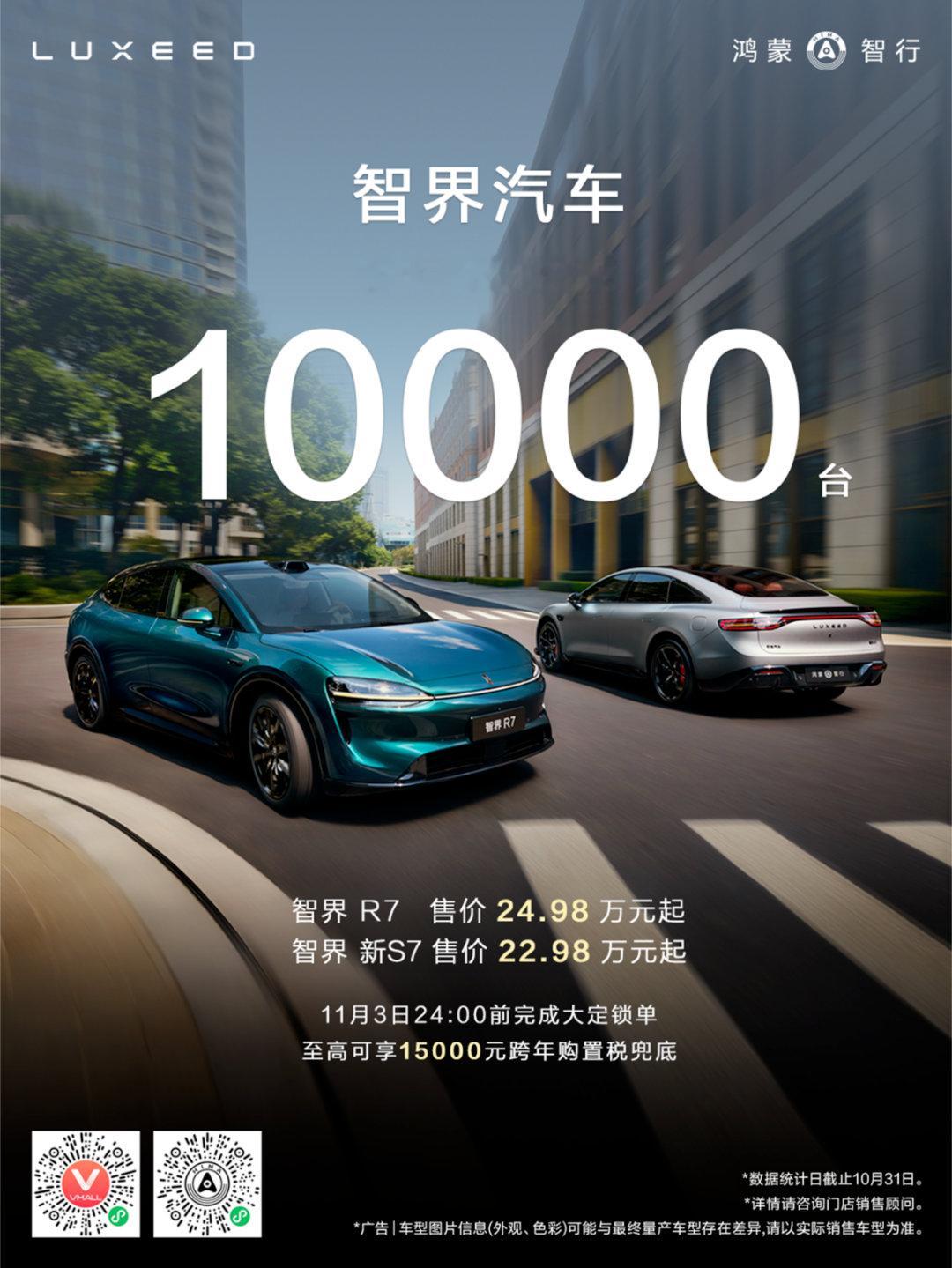智界2.0初见端倪,10月份交付破10000台,要知道电池影响最大的就是智界,继续加油吧[并不简单]智界汽车鸿蒙智行
