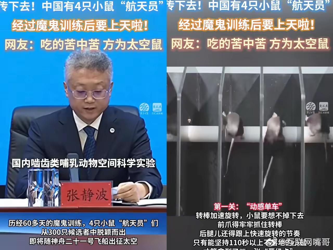 别以为这四只航天鼠是走后门,它们可是300只候选者里杀出来的“卷王”!抗晕旋转转到天旋地转,立马就得闯独木桥走直线,倒立模拟太空漂浮、迷宫探路都是常规考核,硬生生靠硬核实力拿下太空门票。