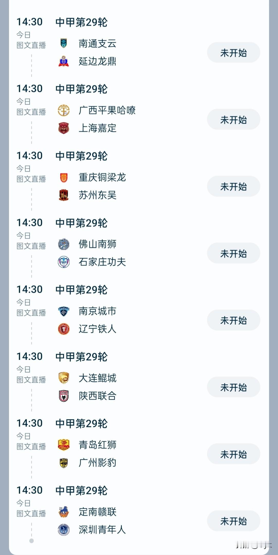 重庆铜梁龙、广州影豹争第二,广西平果、深圳青年人保级生死战! 再过一个半小时,中甲第29轮就要全面打响了!今天下午2点半,所有比赛同时开球,这样的安排真的很公平,每支球队都在同一时间为自己的命运而战,不看别人脸色,只凭实力说话。 今天最值得关注的两场焦点战是重庆铜梁龙主场对阵苏州东吴,以及青岛红狮迎战广州影豹。这两场对决都关系到冲超的走势。 青岛红狮目前排名倒数第一,已经确定降级,广州影豹客场作战应该没有太大压力。 重庆铜梁龙主场对阵苏州东吴的比赛则是一场必须拿下的战役,他们目前积分领先2分,苏州东吴则处于无欲无求的状态,所以这场胜利对重庆铜梁龙来说至关重要。 另外,保级方面,广西平果哈嘹对阵上海嘉定的比赛也很关键。上海嘉定无欲无求,广西平果必须赢球,才能为最后一轮的保级争取更多机会。同时,深圳青年人的比赛结果也将影响保级形势。