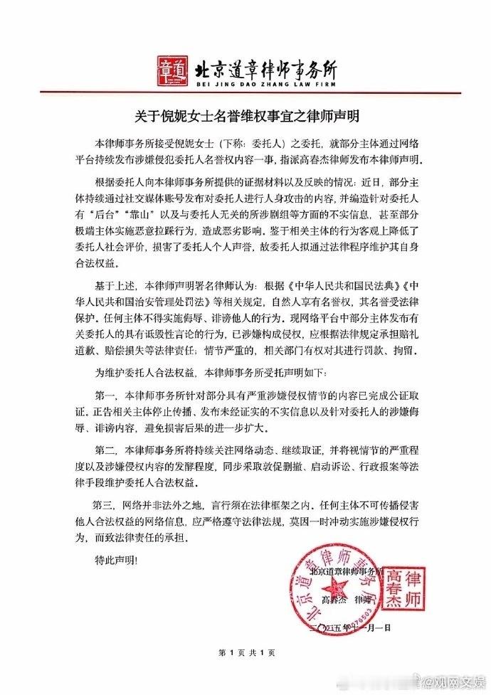 本工作室绝不姑息侵害倪妮女士合法权益的行为,已委托律师取证并追究相关用户的法律责任,希望大家共同维护良好和谐的网络风气。