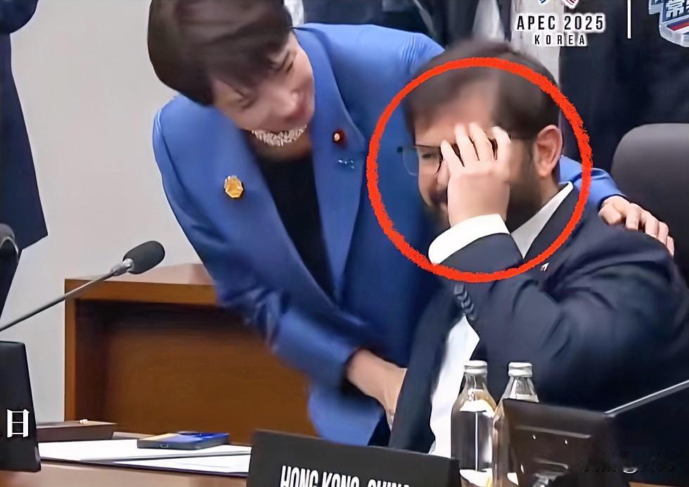 39岁的智利总统面对如此热情的日本首相高市早苗直接给整不会了!当地时间11月1日,高市早苗在韩国参加第32次亚太经合组织领导人峰会非正式会议期间,再次出现过于热情的翻车场面,高市早苗看到智利总统博里奇单独阅读会议材料后,主动搂脖儿攀谈,然而,在如此重要的国际会议场合,高市早苗过于热情的表现无疑吓到了年轻的博里奇,从媒体曝光的现场画面不难看出,博里奇从吃惊、到脸红,再到双手合十“求饶”的整个过程,场面可谓相当尴尬。不得不说,这位日本史上首位女首相的外交风格有些过于奔放了,已经让他人感到了不适的程度,甚至让第一次见面且年轻的智利总统有些害怕了。