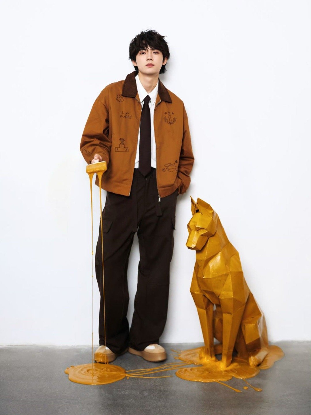 姐狗文都给周翊然递本吧 夹克白衬衫+狗狗卷毛,怀里揣着修勾,连地面都有小心机爪印