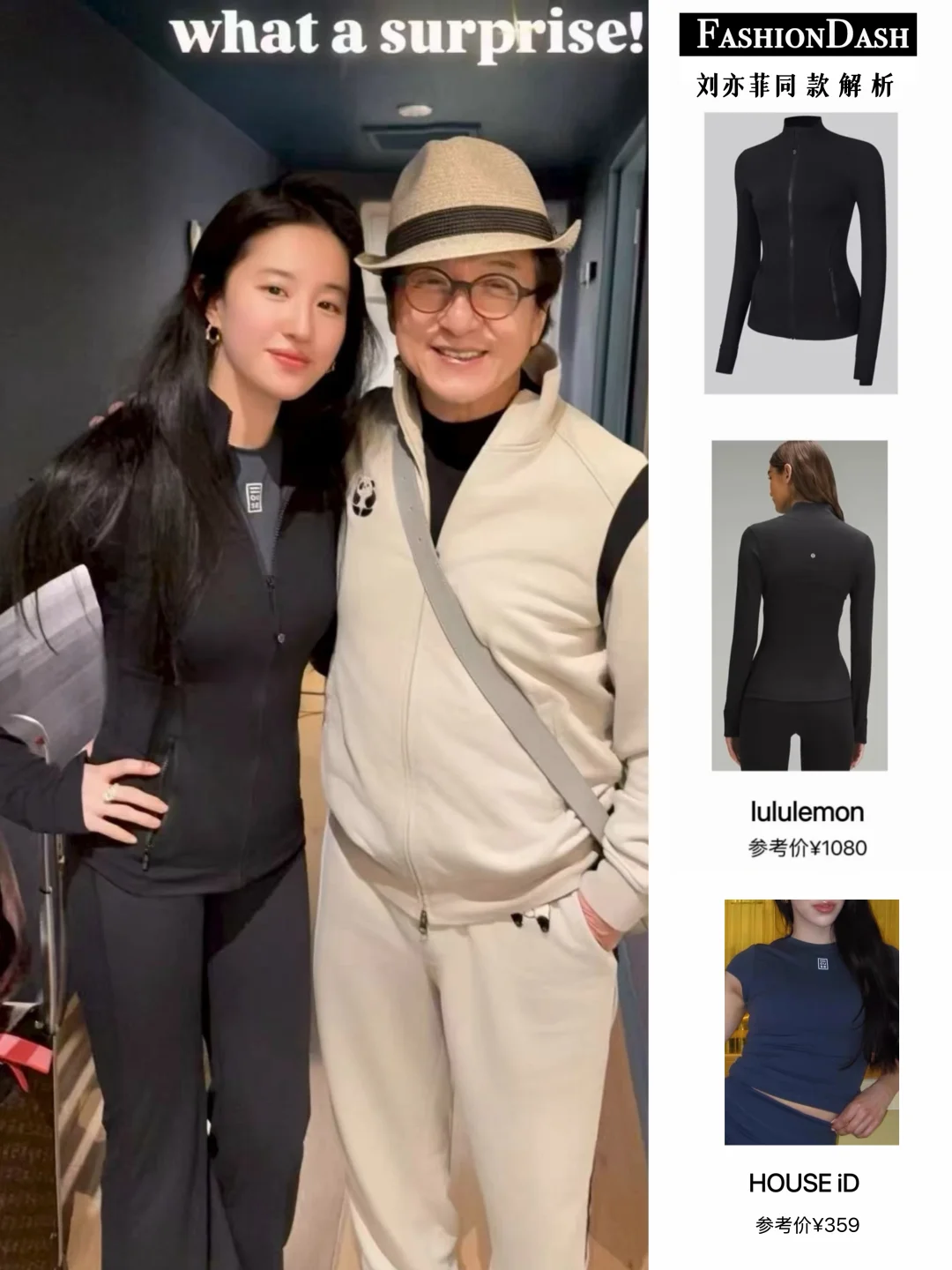 刘亦菲 成龙惊喜同框,姐这身材真好啊!一身黑色运动穿搭随性又时髦! 图片来源于刘亦菲