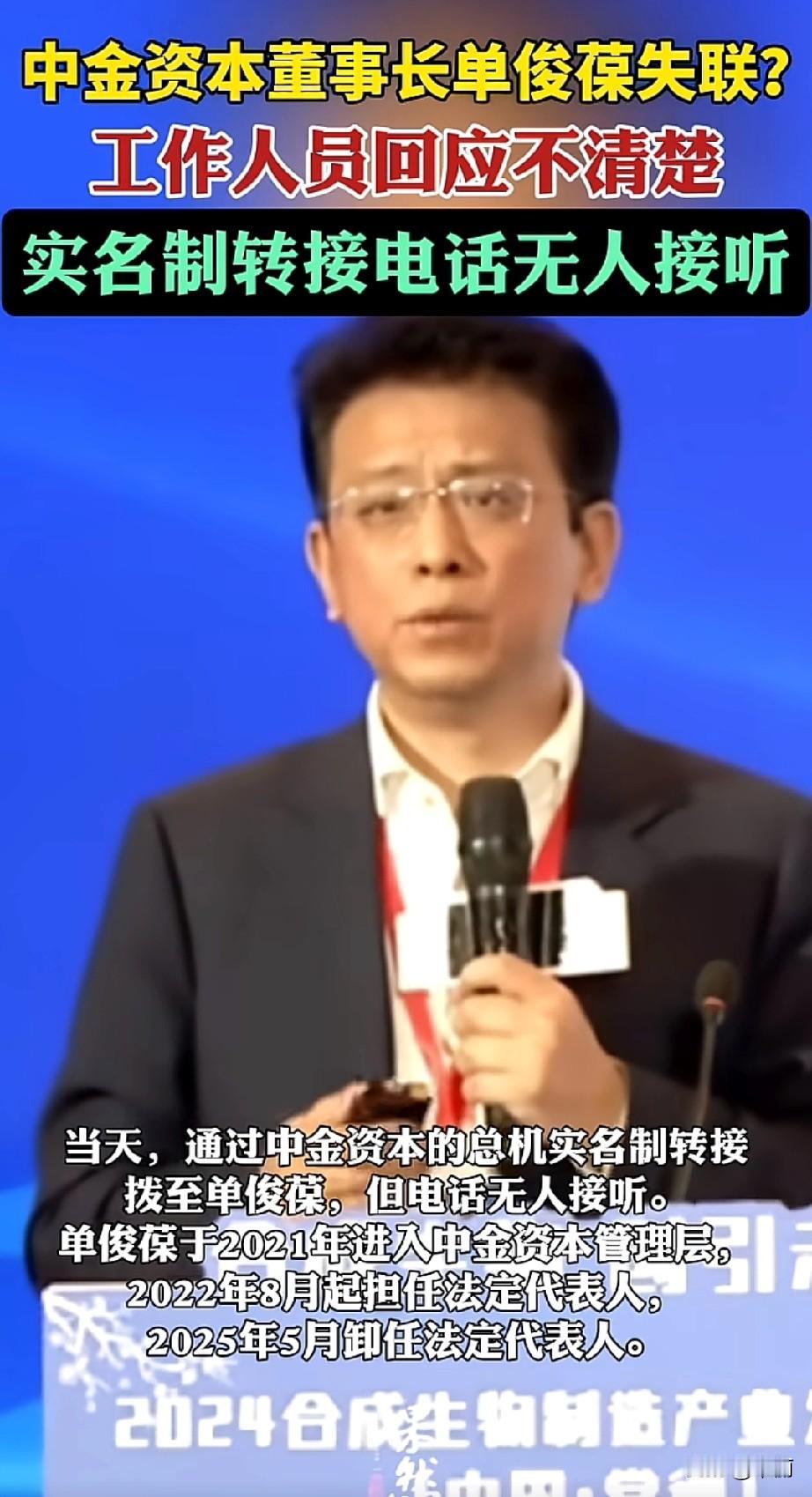 中金资本董事长单俊葆已失联一周多,电话微信联系不上,官网职务信息也被删除。失联前6天,他还在武汉参加签约活动并演讲,状态看着挺从容。 今年7月就传过他被调查,当时他公开露面辟谣了。他2001年加入中金,2021年进中金资本管理层,2025年5月卸任法定代表人。 知情人士说他失联可能和公司腐败案、基金运作问题有关,还有“抽屉协议”挪用政府母基金的情况。这半年中金资本好几名高管接连被查或失联,金融圈反腐力度一直在加大。 不管职位多高、履历多光鲜,都不能触碰规则底线。合规才是长久发展的关键,期待官方后续通报,也希望行业能更规范透明。