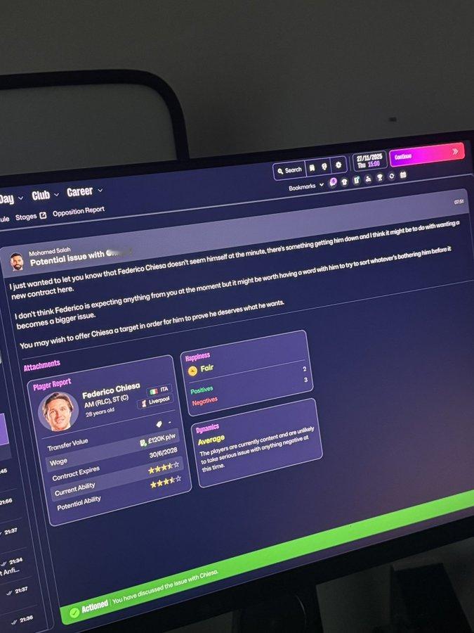 赛季开始三个月后,基耶萨要求续约,然后范戴克和他的队友们挟持我,逼我给他新合同。