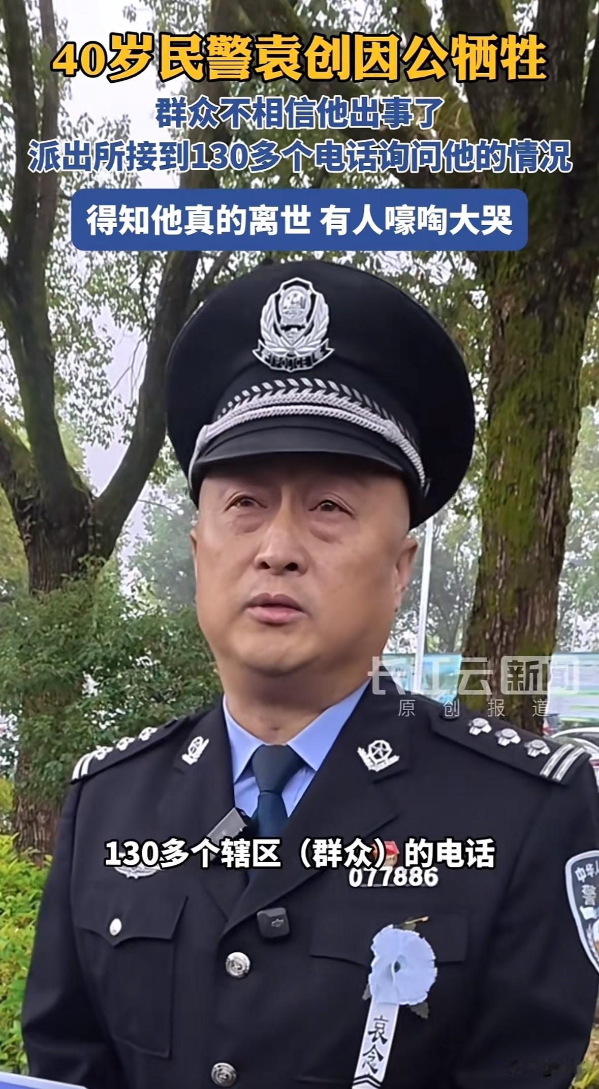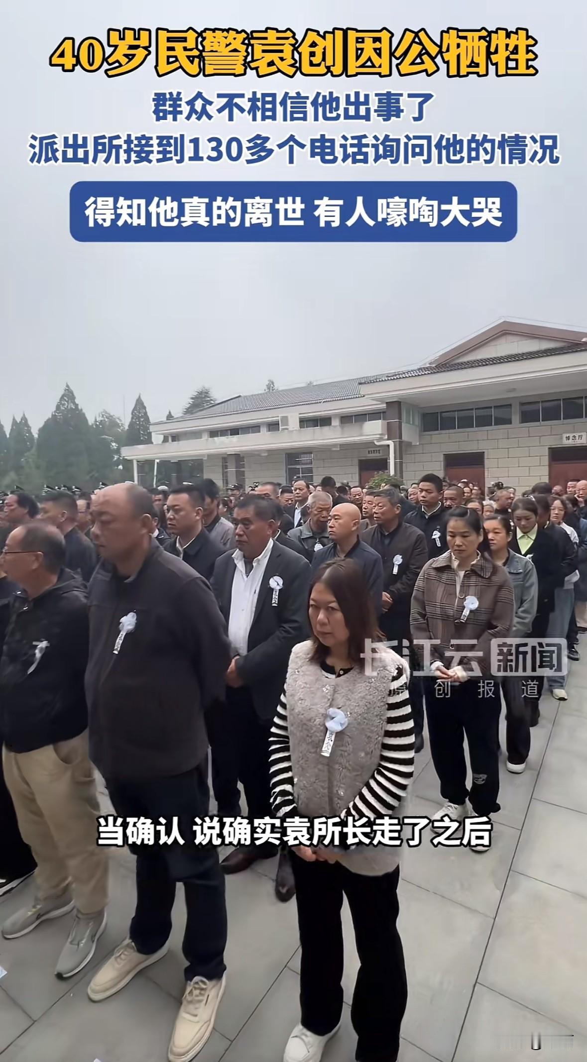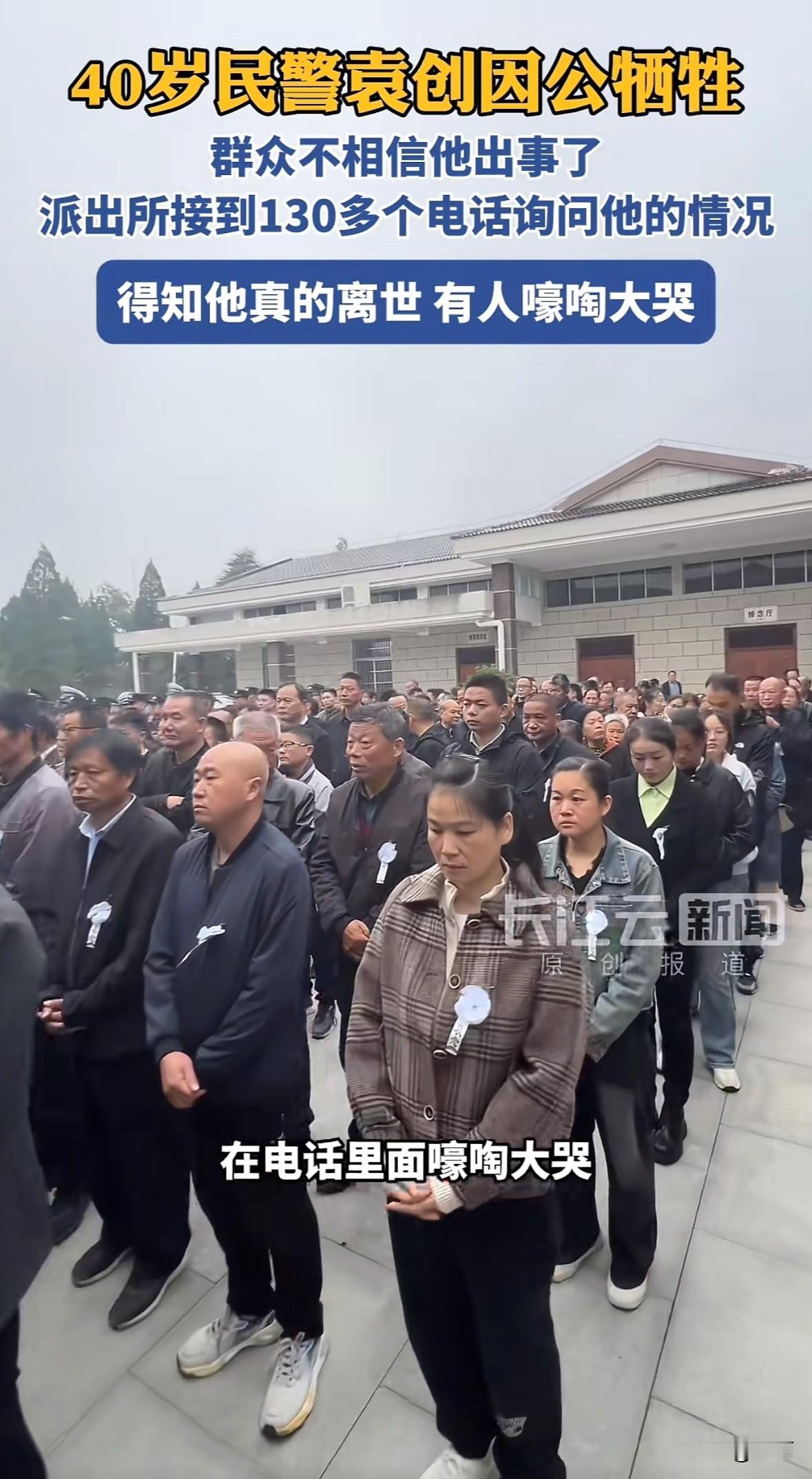 湖北40岁民警袁创,10月27日在派出所备勤室突发疾病因公牺牲。 群众压根不愿相信,他牺牲第二天,辅警就接到130多个询问电话,素未谋面的养殖户哭着说他是真好人。 17年从警路,他走遍27个村,笔记本记满群众诉求,推“微心愿码”、“流动户籍室”,帮老人配防走失手环、捐资助学。 牺牲前一天周日,他还放弃休息回所调解纠纷,常说“群众的事情耽误不得”。11月1日近500人自发送行,公安部发唁电致哀。 群众的不舍是最真的认可,基层民警用实干暖了民心。愿英雄一路走好,也盼所有坚守岗位的人多保重身体。