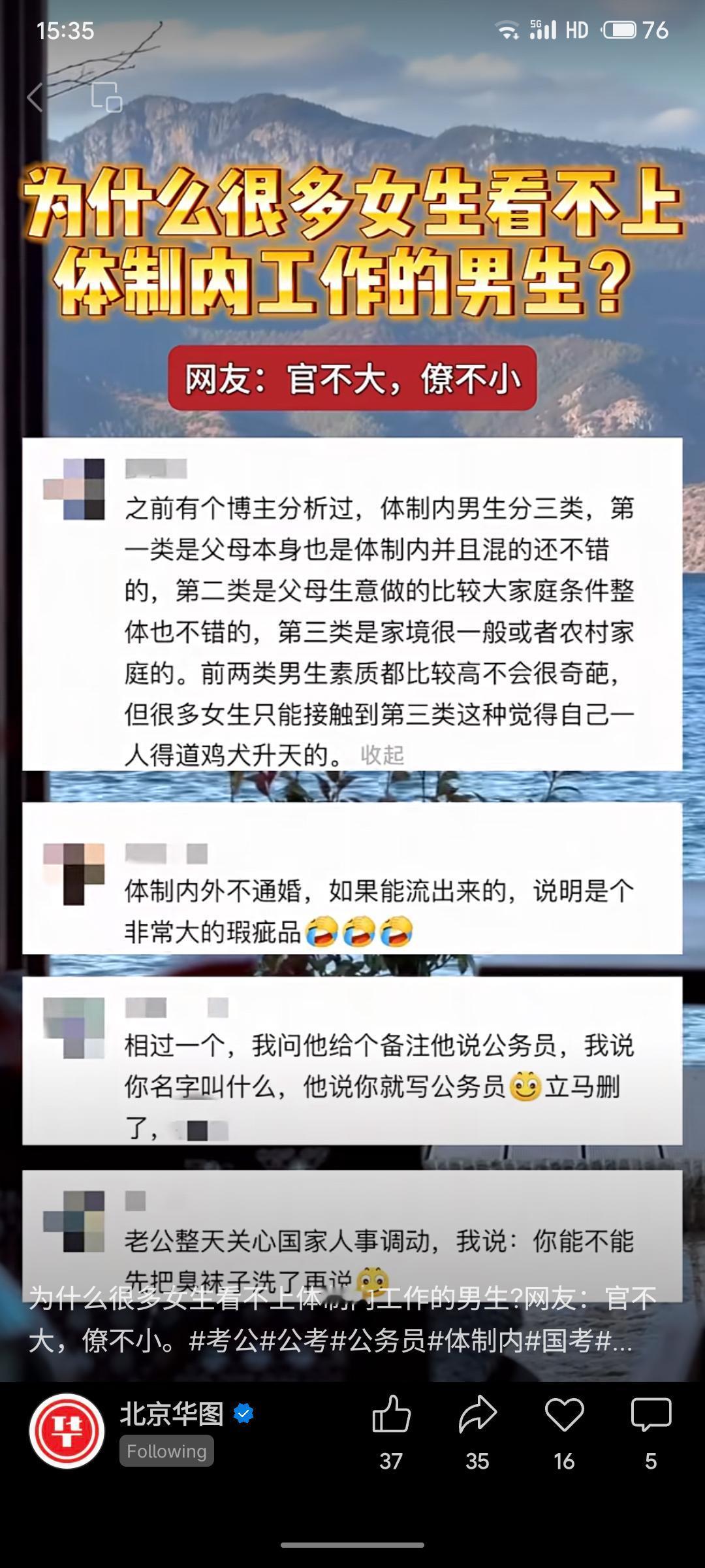 该话题反映部分女性对体制内男性的负面观感。网友以“官不大,馍不小”调侃其优越感,并指出部分出身普通的体制内男性在婚恋中易显露“一人得道”心态,过分强调身份却忽视平等沟通,引发对方反感。