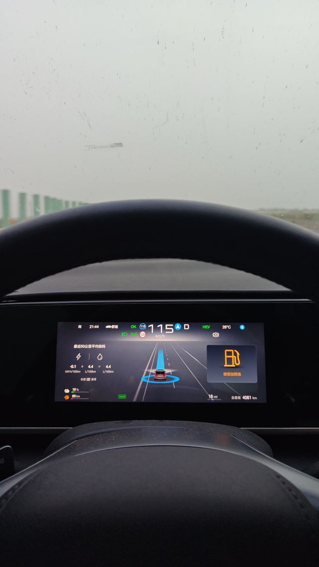 秦L智驾版最低配,高速实测 我是5月2日提的车,刚好这个月回媳妇儿家过节,专门进行了一次实测,出发前满油满电,油加到了第一次跳枪,显示续航2020Km,车上三个人,行李塞满了,后排座位都塞了一半。全程没有下高速,最高速度115km/h,因为我觉得这个速度更省油一些,智驾占了全程的98%,有一部分路段限速100我设定105km/h。跑到了1380公里显示续航还有90公里,所以跑到1400还是没有压力的。空调没有全程开。其中有一个路段,智驾还躲了一次路边的事故车,非常nice!