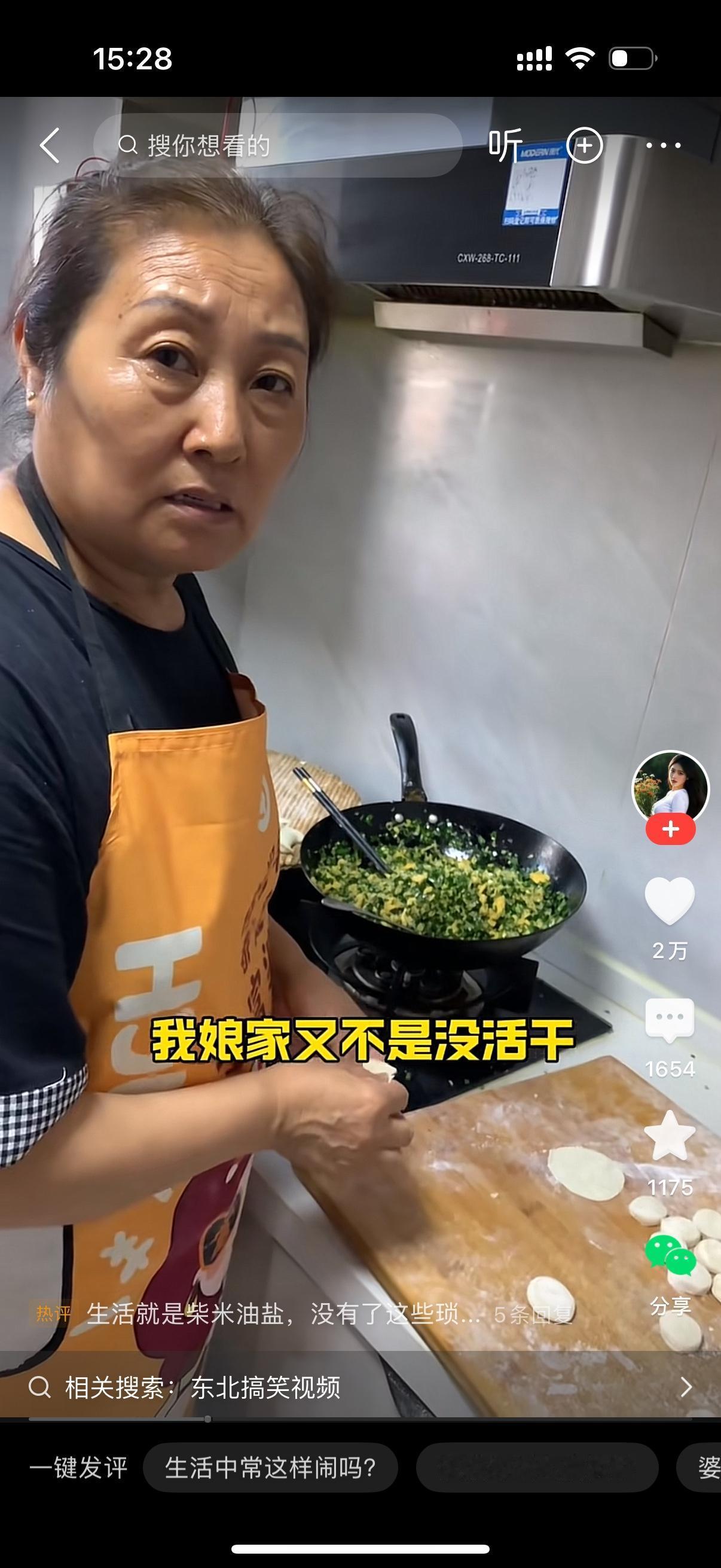 媳妇突然把擀面杖扔下,我不干了。婆婆问她,为什么不干了?媳妇抱怨说,我娘家又不是没活干,非要嫁你们家来干活?婆婆想了想,你说的有道理哦,走走走,咱俩都走,我也是媳妇。媳妇却不淡定了,妈,你不能走,还要带你孙子了。婆婆却说不带了,我娘家还一堆事了。媳妇要哭了,妈,我错了,咱俩接着干吧。婆婆心里乐开花,小样,我还治不了你?