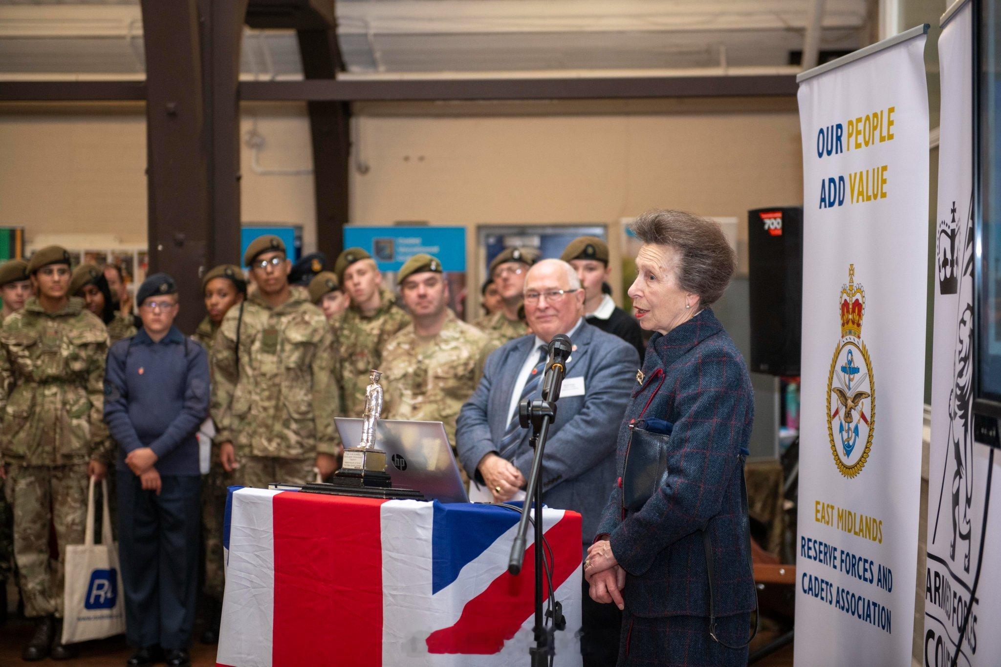 2025年10月29日,安妮长公主在北安普顿参加北安普顿郡青年军官学员交流会。