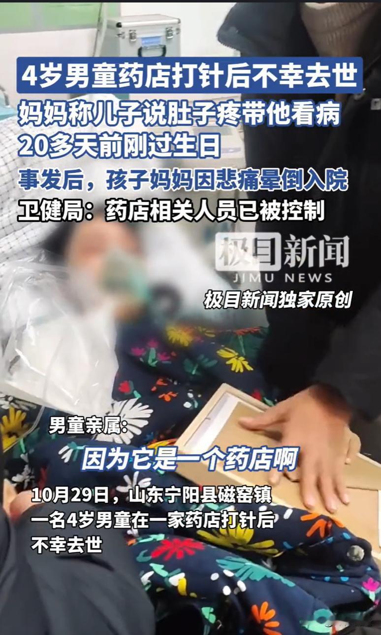 山东宁阳,一4岁男孩刚过完生日不久,因喊肚子疼,妈妈带他到镇上药店求助。店员既没