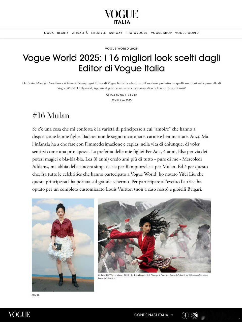 刘亦菲VOGUE最佳造型 意大利版VOGUE编辑评选的Vogue World好莱坞16个最佳造型,其中有刘亦菲!木兰红闪耀好莱坞,官方认证,全球星光⭐️[打call]