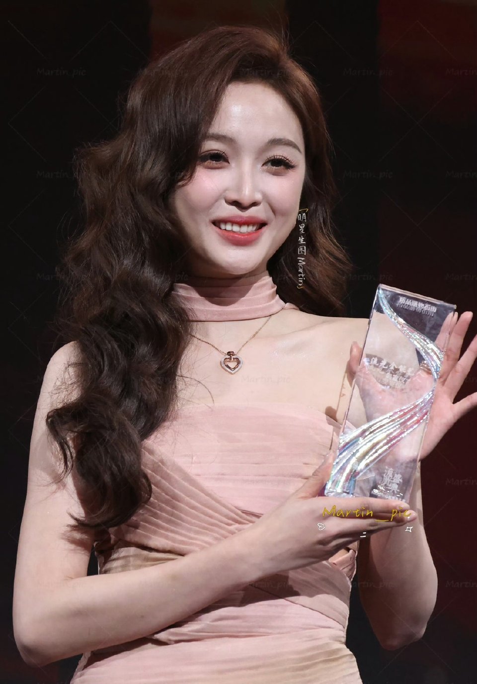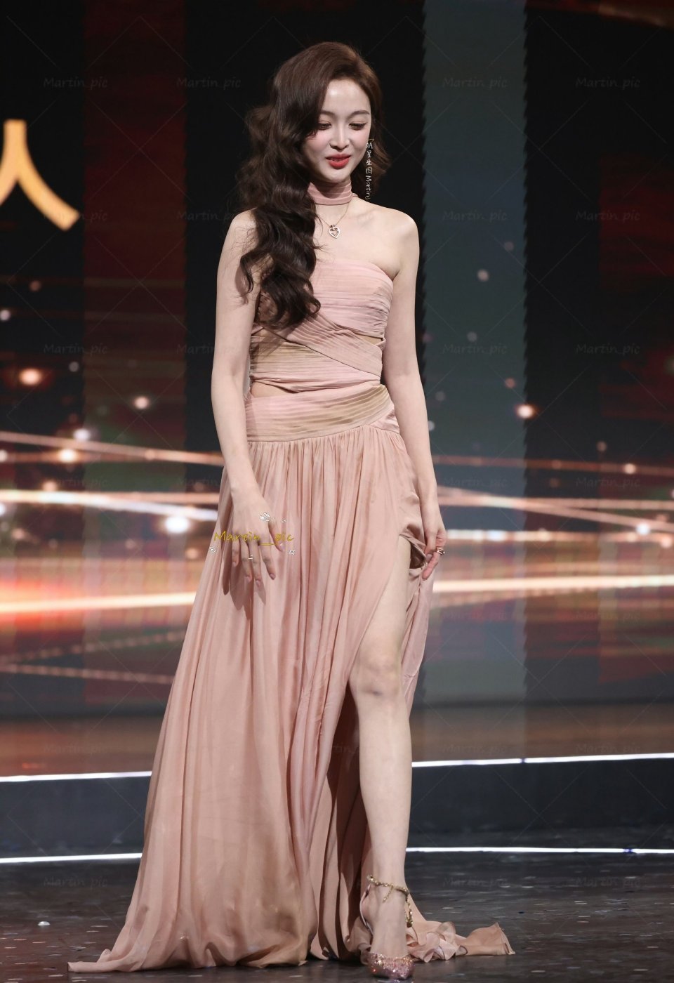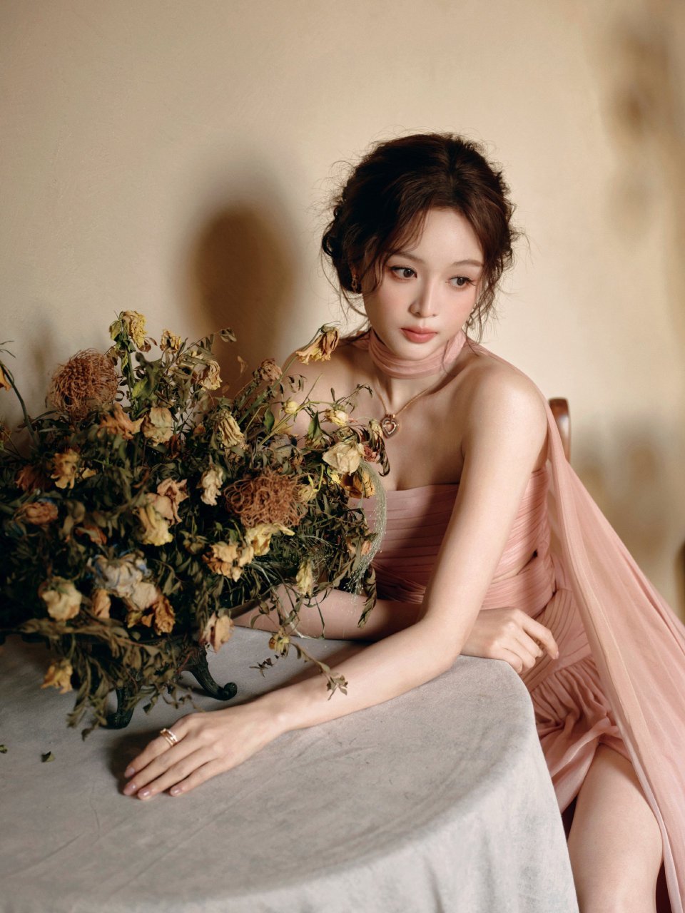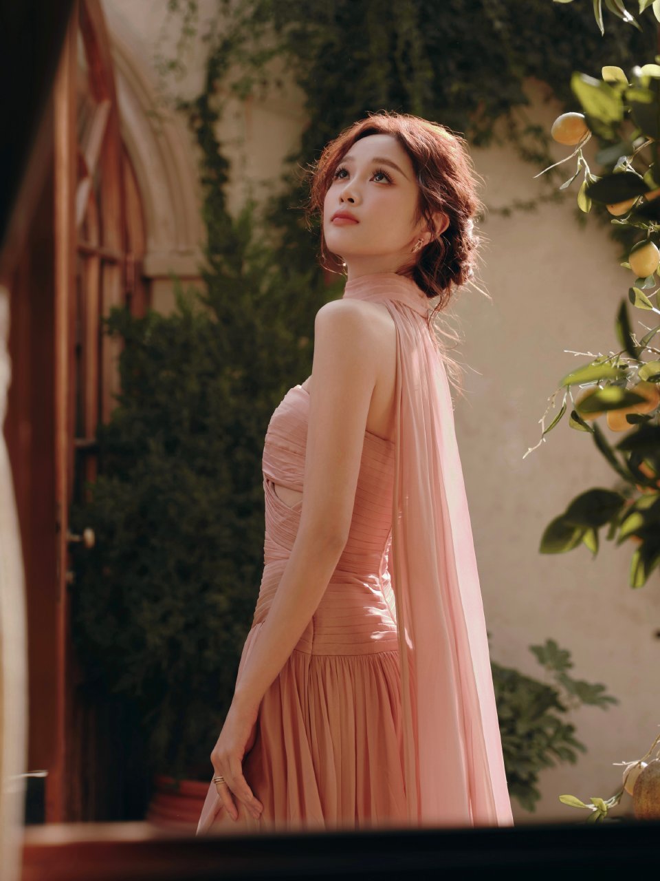 刘亦菲把死亡玫粉穿出了定制款的感觉,这种颜色普通人穿上分分钟黑三度,她居然能穿出